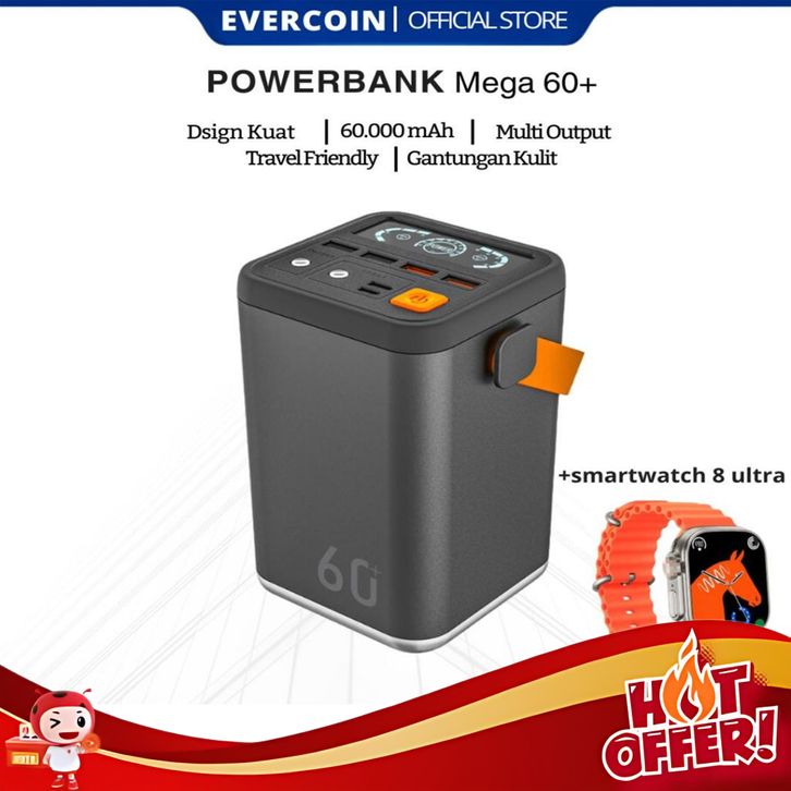 ADA-EVERCOIN POWER BANK MEGA 60+ 60,000MAH CHARGE 4 SEKALIGUS MULTI OUTPUT KAPASITAS MEGA POWABANK
