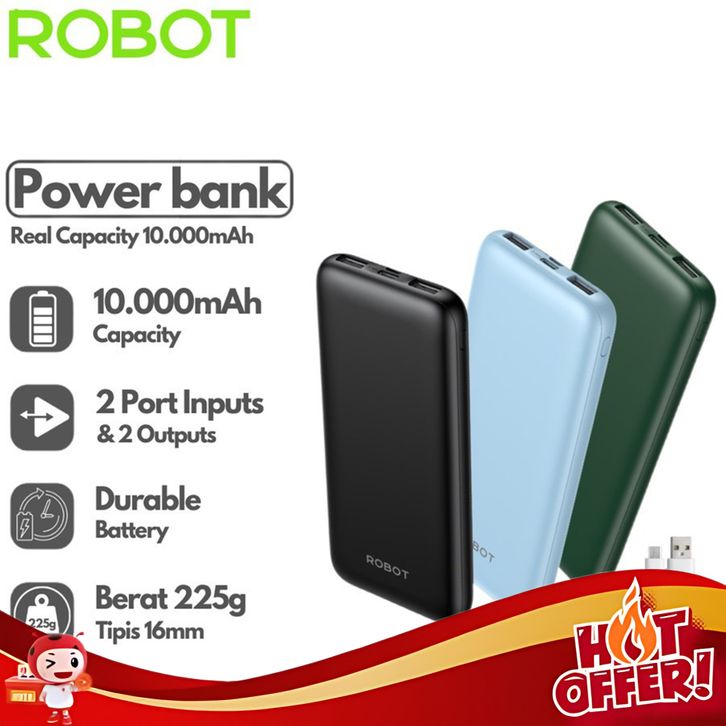 ADA-POWERBANK ROBOT 10000MAH RT12 DUAL INPUT PORT TYPE C & MICRO USB