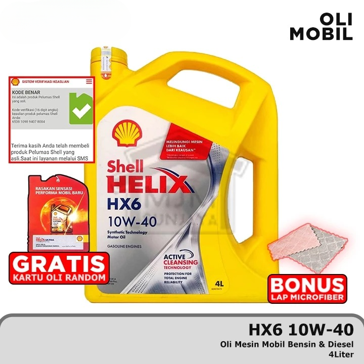 Oli Mesin Mobil Shell Helix HX5 HX6 SAE 4 Liter SCAN Bensin Solar Diesel Full Synthetic