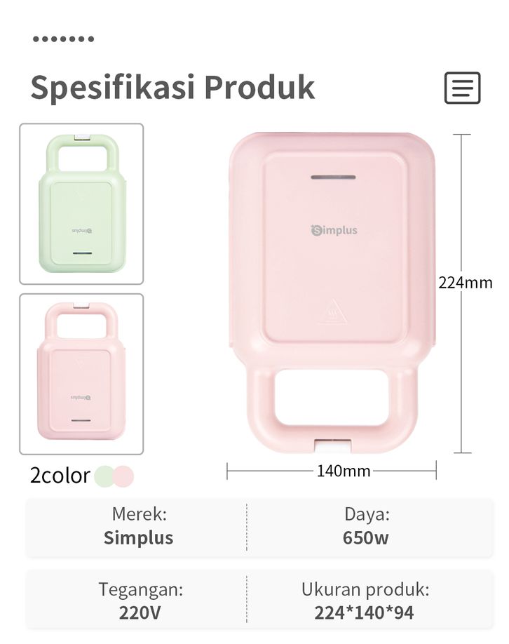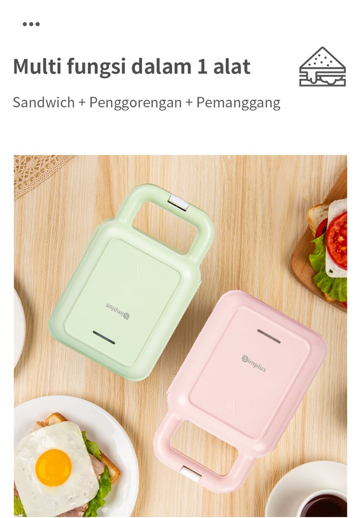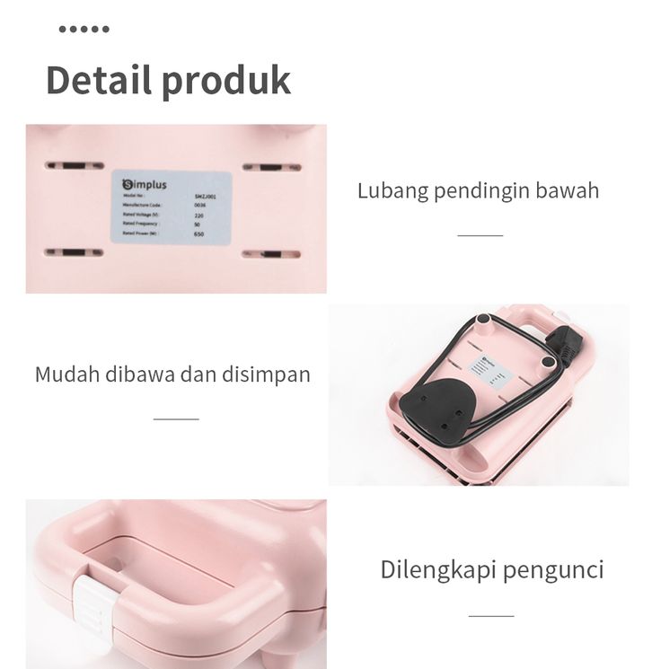 SIMPLUS TOASTER ANTI LENGKET PEMANGGANG ROTI SANDWICH MAKER LOW WATT BERGARANSI 1 TAHUN