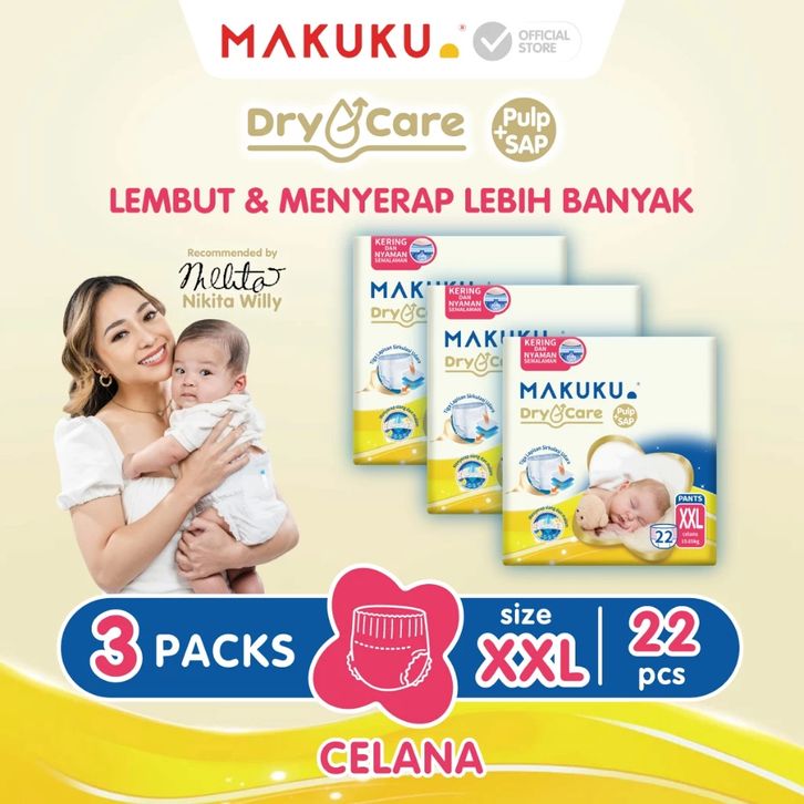 PAKET 3 BALL MAKUKU DRY CARE PANT XXL22 +4 Popok Bayi