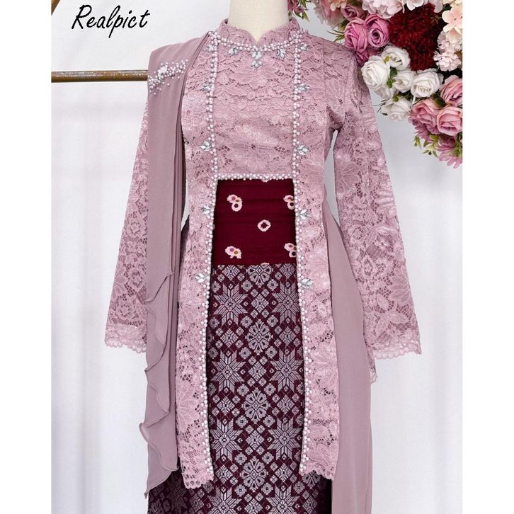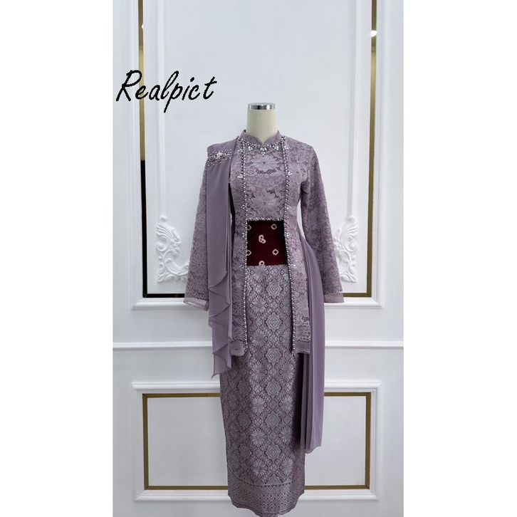Kebaya Perpisahan LAKSMI ROK + ATASAN + OBI Kebaya Kutu Baru Modern Kebaya Wisuda Lamaran Set Kutubaru Full Payet