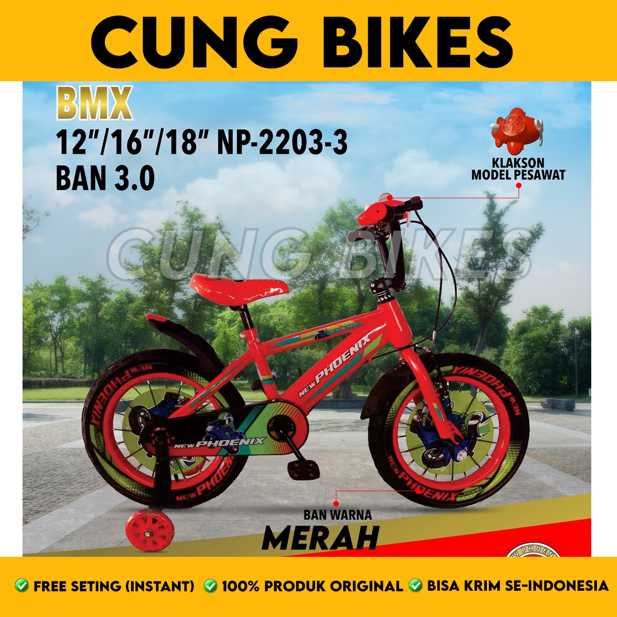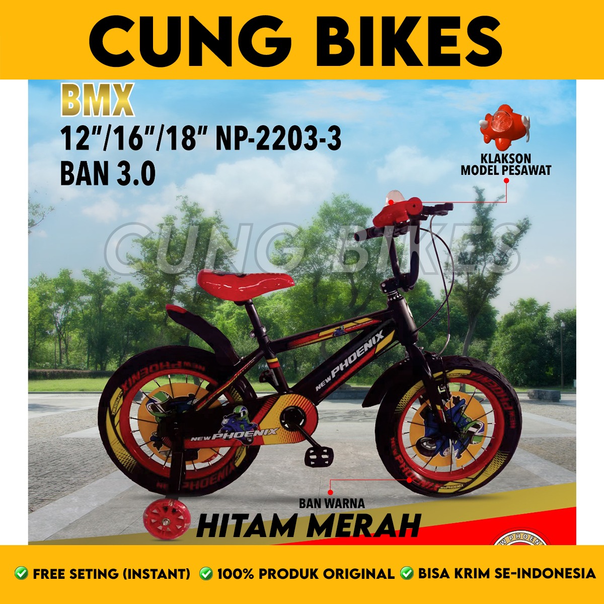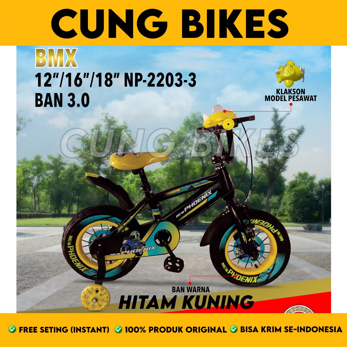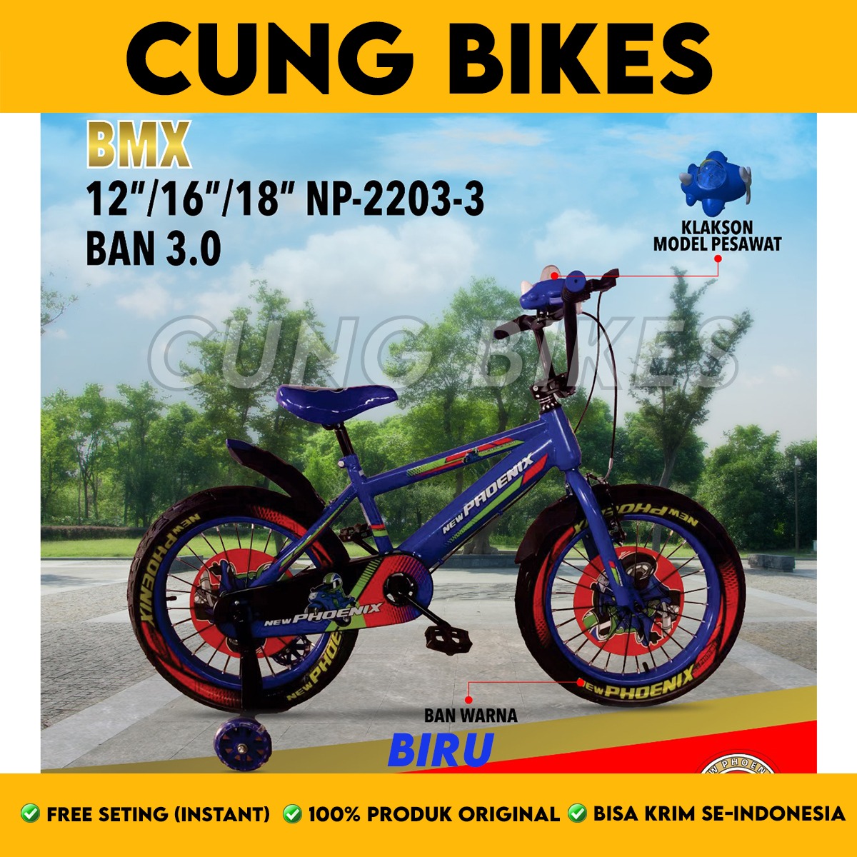 Sepeda Anak Laki BMX PHOENIX 2203-3 Ban 3.0 Ukuran 16 18 Inch Ban Warna 3.0 Ada Klakson New Edition
