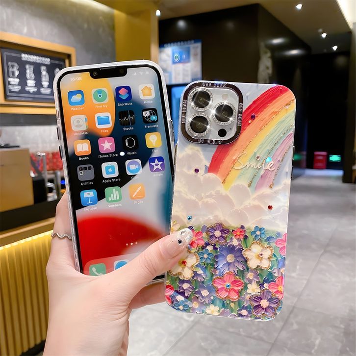 LUXURY DIAMOND RAINBOW FLOWER CASE FOR IPHONE 15 14 PLUS 13 12 11 14 15 PRO MAX SHINY BLING MEWAH BUNGA SOFT CASING IPHO