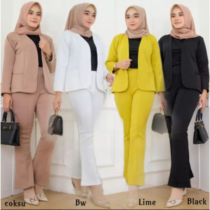 SETELAN JAS WANITA ONE SET 2IN1 BLAZER NABILA CELANA CUTBRAY BAHAN SCUBA PREMIUM SETELAN BL BAHAN ADEM TERMURAH