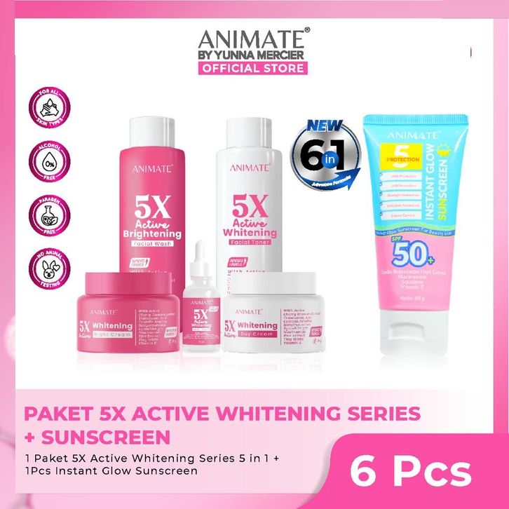 SKINCARE ANIMATE PAKET 5X ACTIVE WHITENING SERIES 5IN1 SUNSCREEN ORIGINAL
