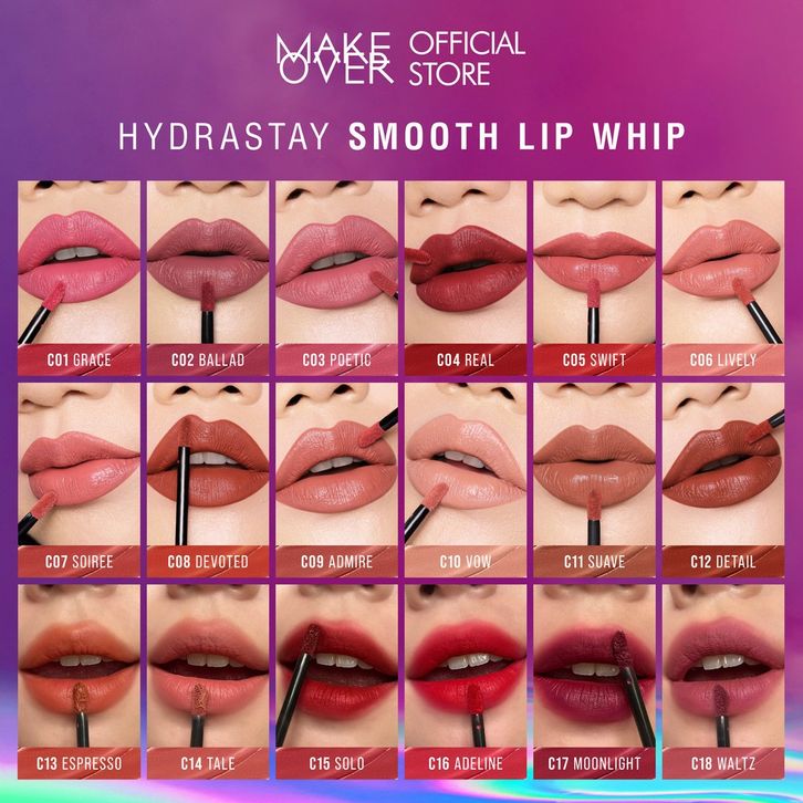 MAKE OVER Hydrastay Smooth Lip Whip - lipcream untuk bibir kering smooth ringan lembab lembut base ombre nude