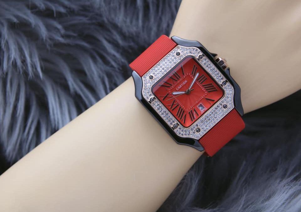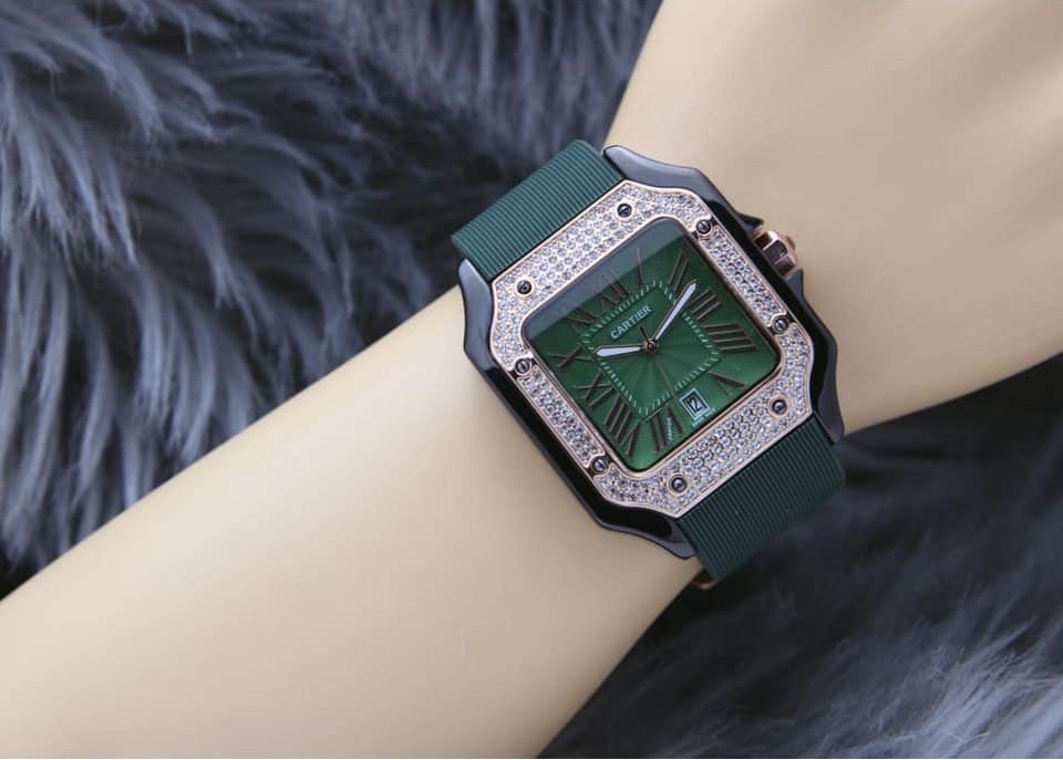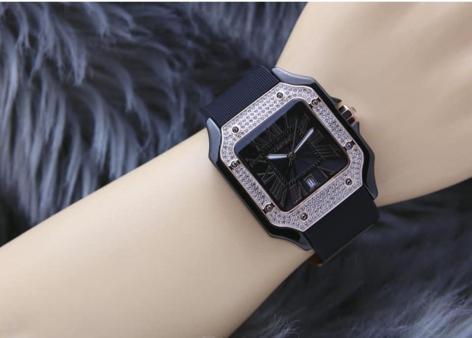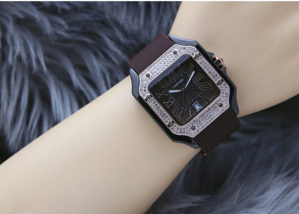 Jam Tangan Fashion Wanita Cartier Mata C3557KZ Tanggal Aktif Tali Rubber Free Box