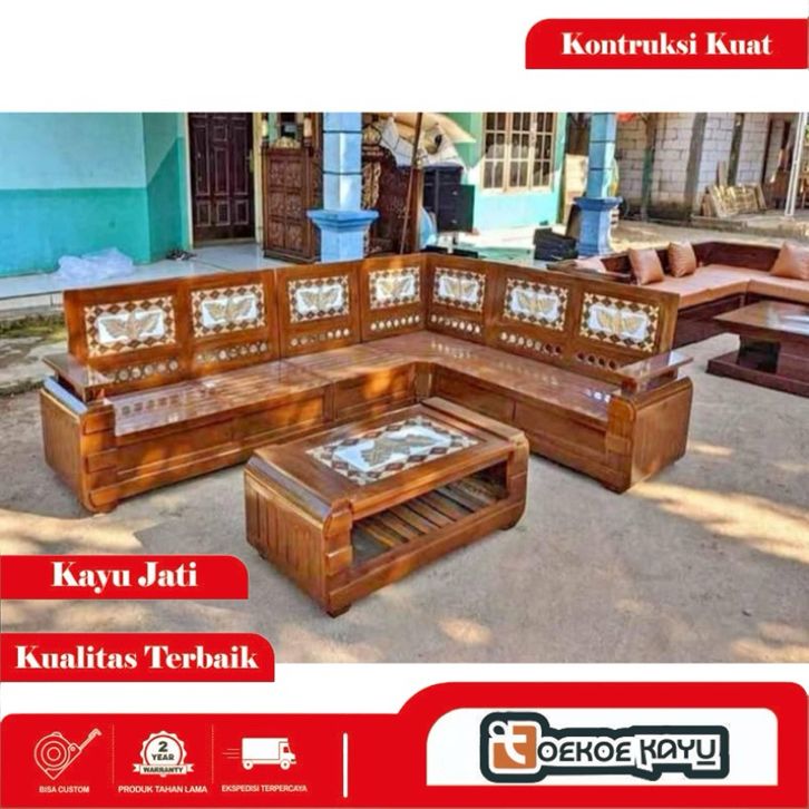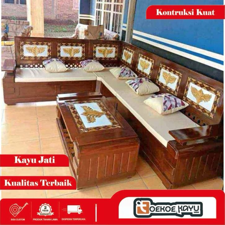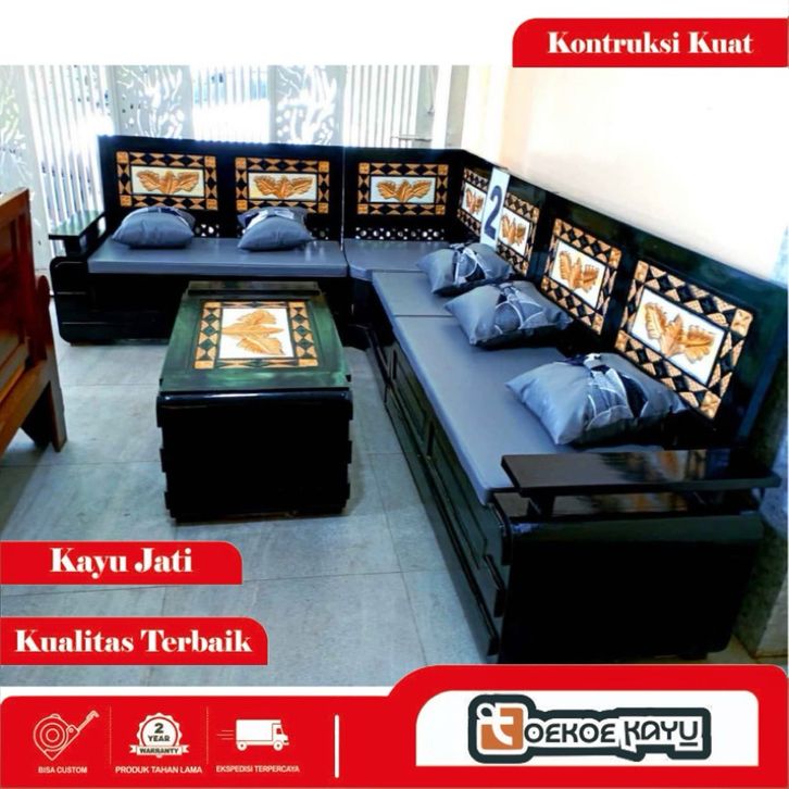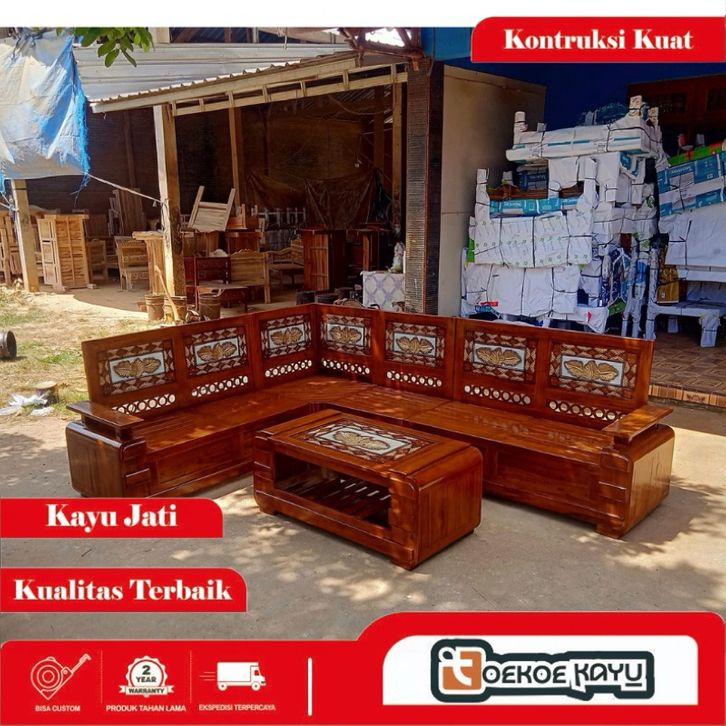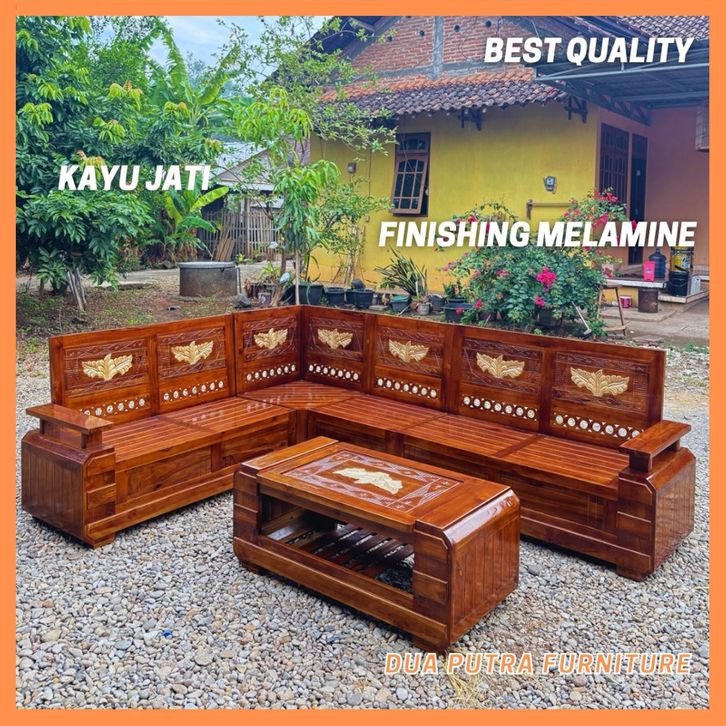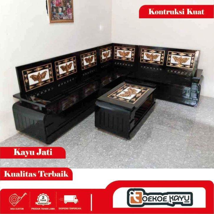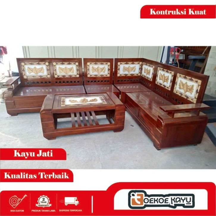 [Star] Kursi kayu ruang tamu/kursi sudut ruang tamu kayu jati, kursi domini motif daun kursi kayu melamine minimalis