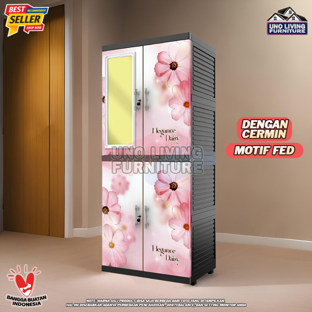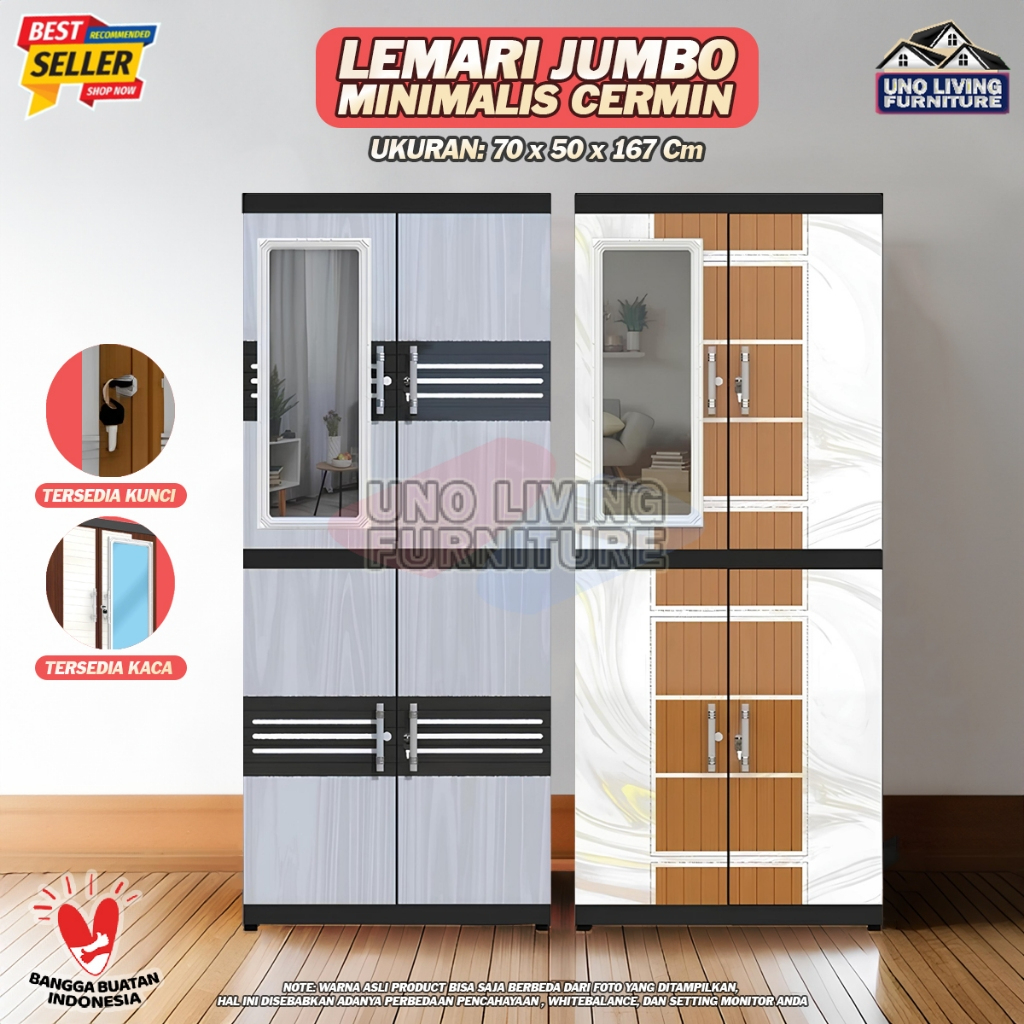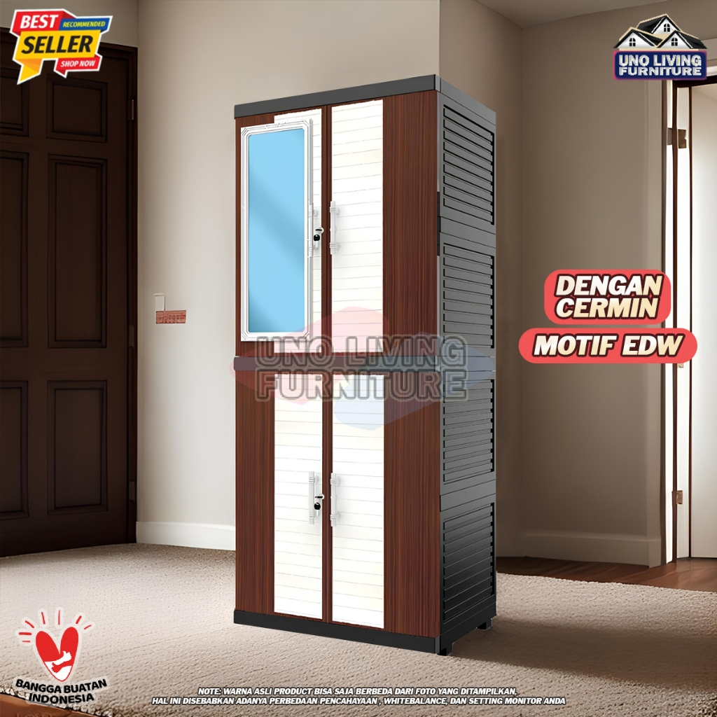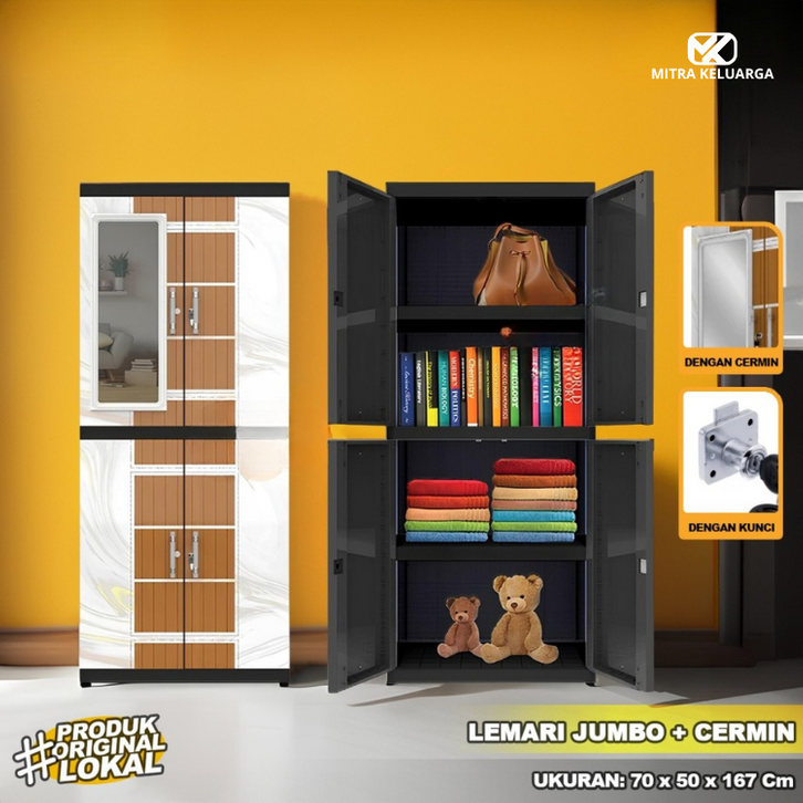 Jumbo Lemari Pakaian Plastik Naiba MSC FIT dengan Cermin Lemari Susun 4 Modern - FULL KUNCI