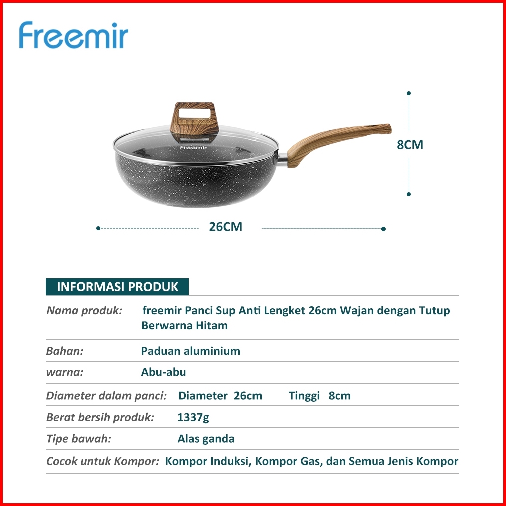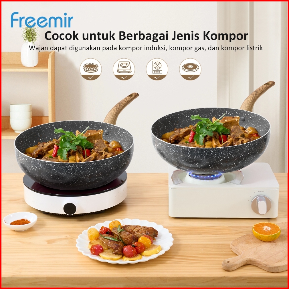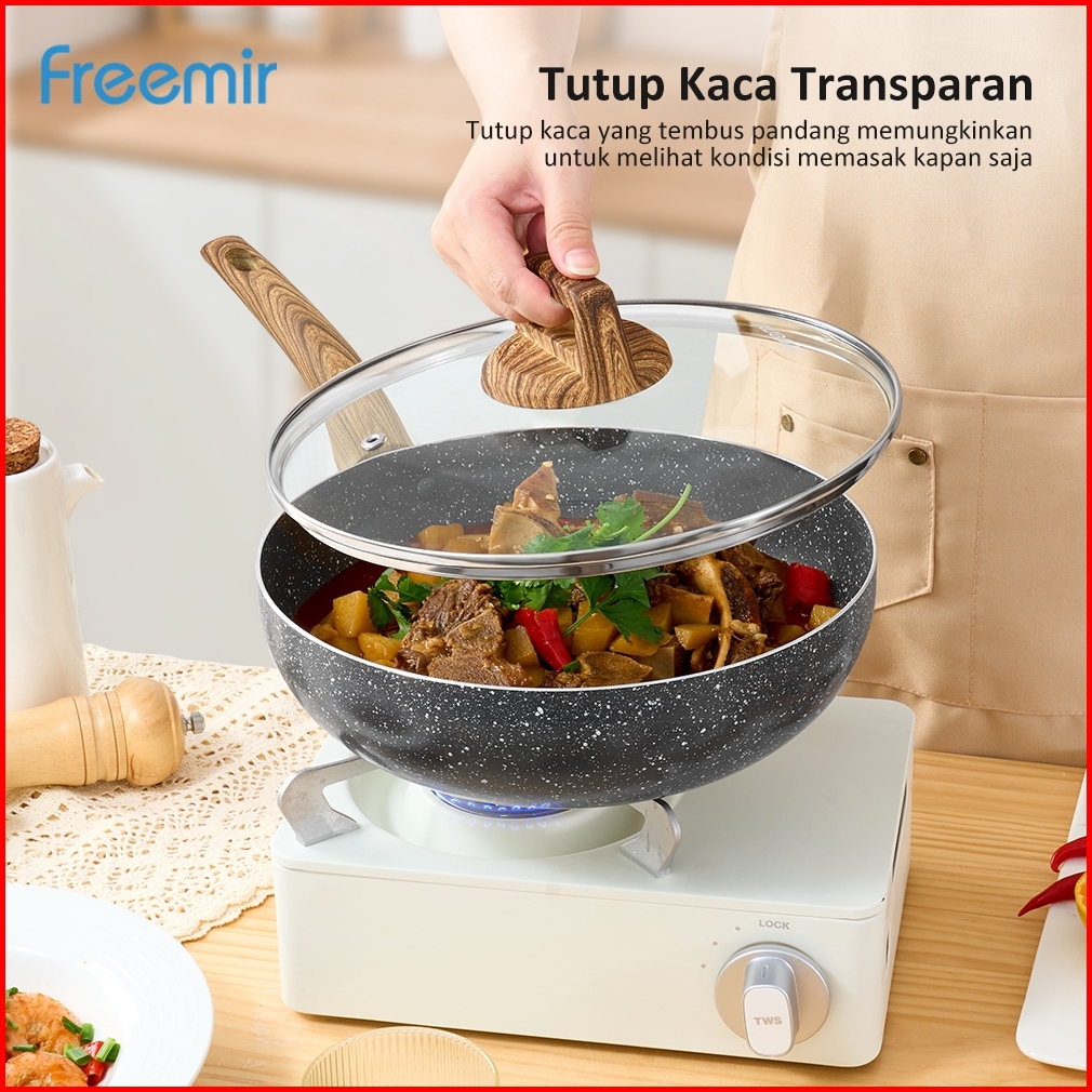 Original Limited Freemir Wokpan Multifungsi 26cm Blue Double Bottom Tutup Kaca Anti Lengket