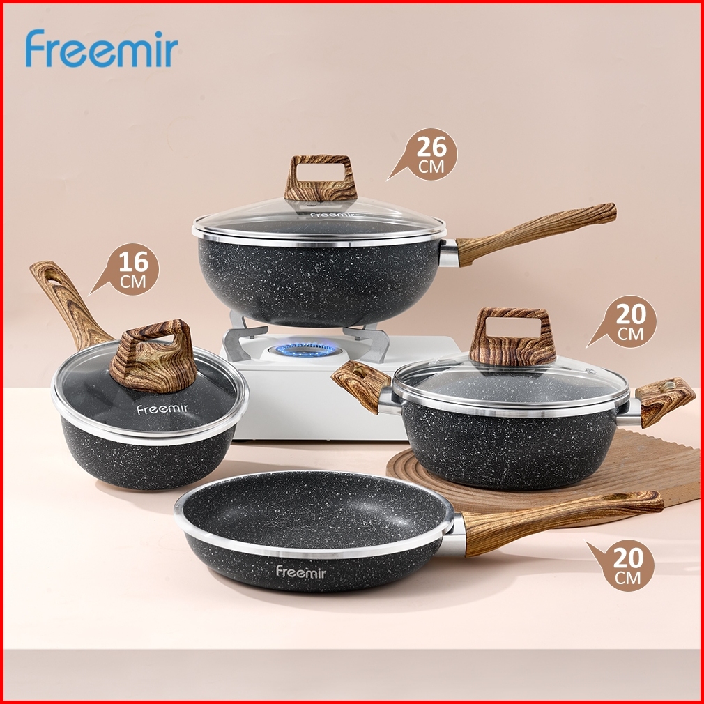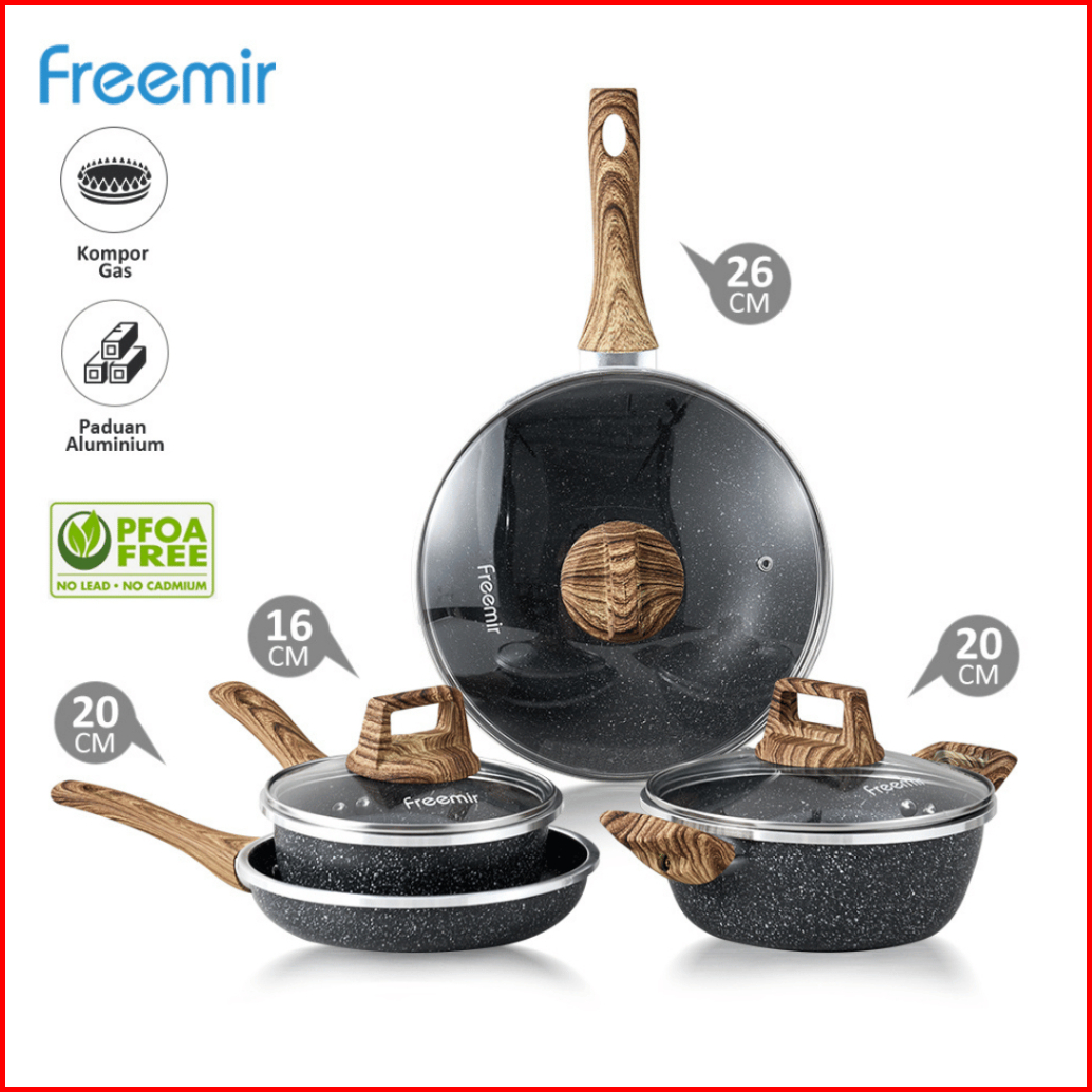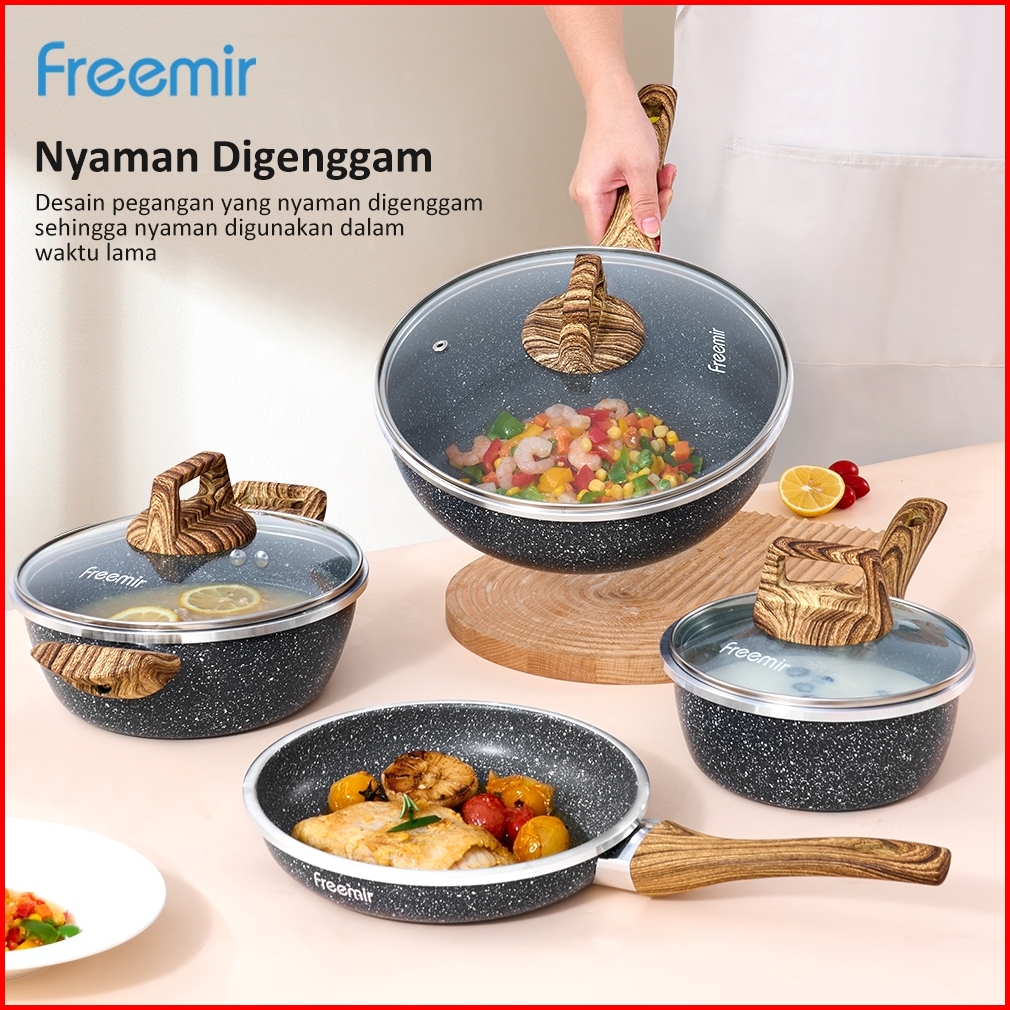 Sale Premium Set 4 Pcs Wajan Panci Jumbo Anti Lengket 26 20 20 16 Cm Woody Marble