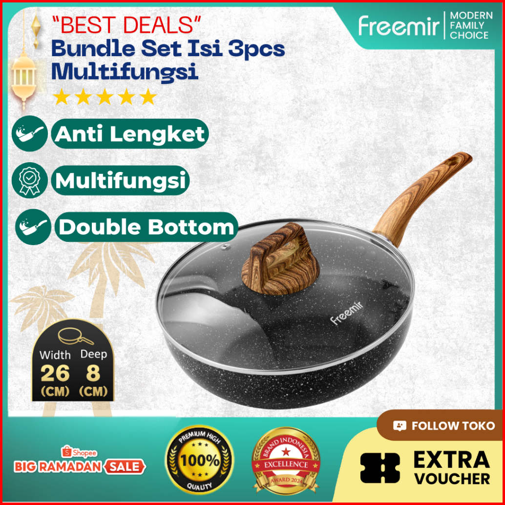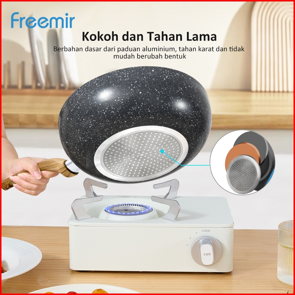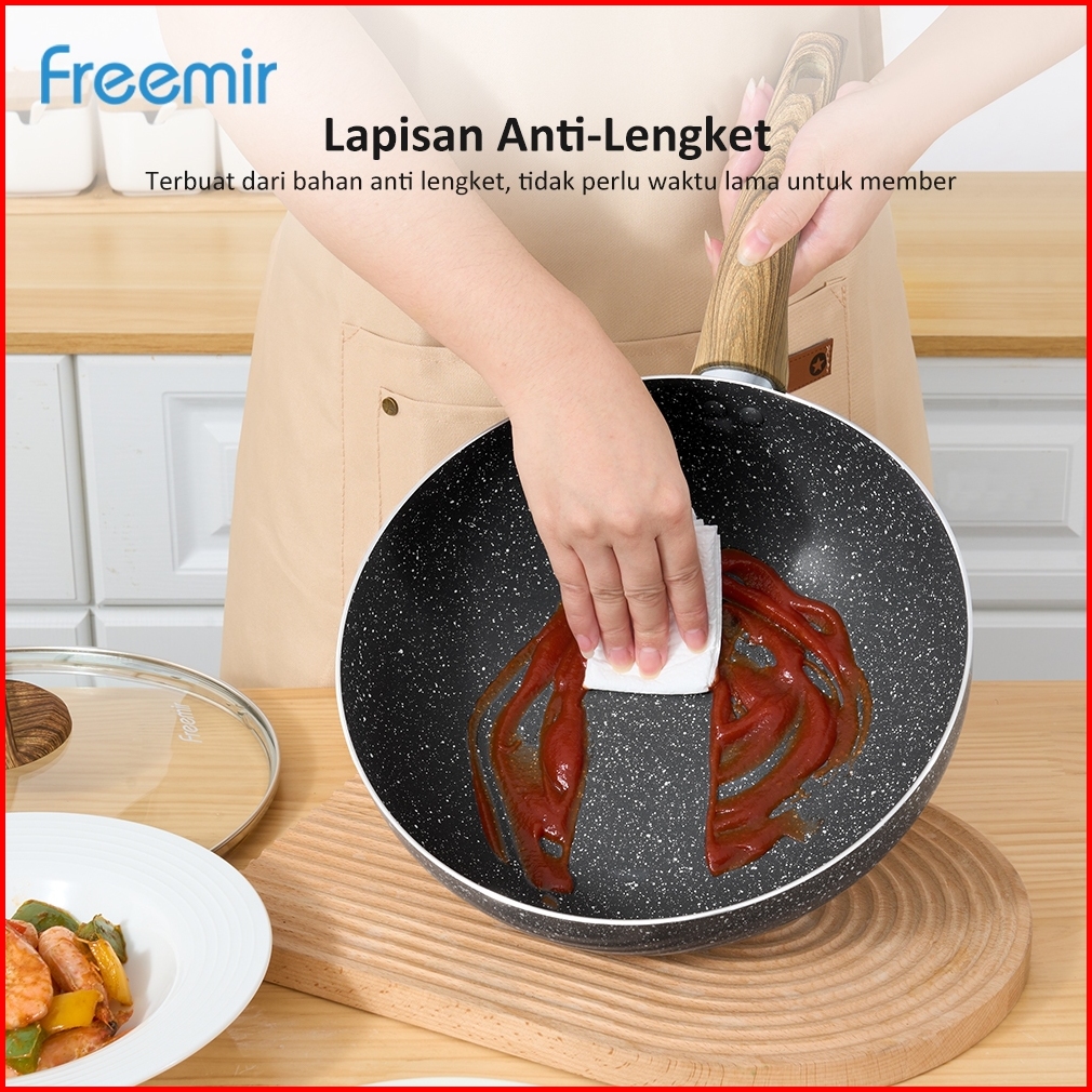 Original Freemir Wajan Jumbo 26 Cm Anti Lengket Tutup Kaca Kompor Listrik Induksi