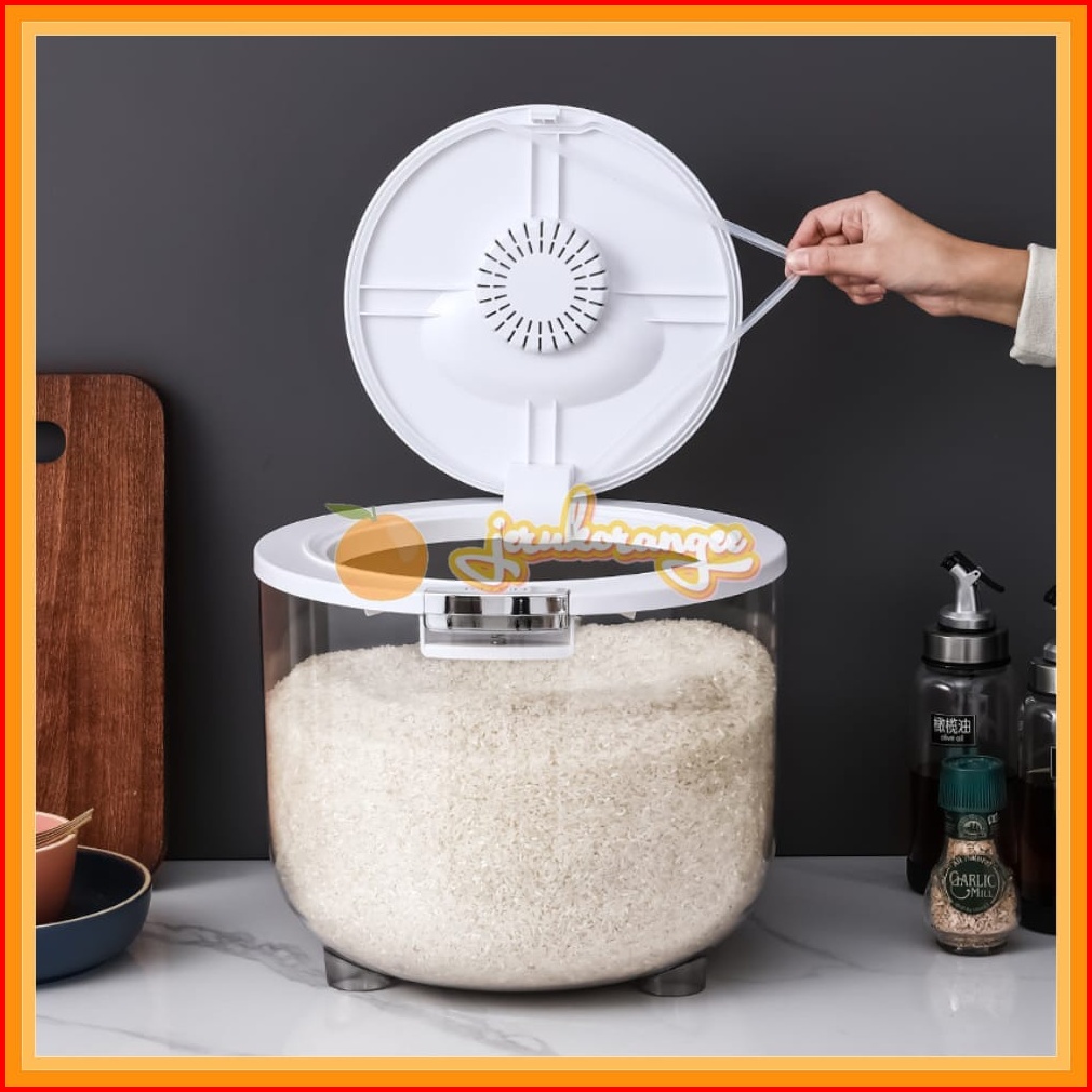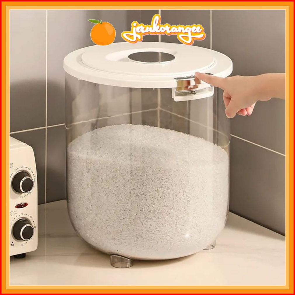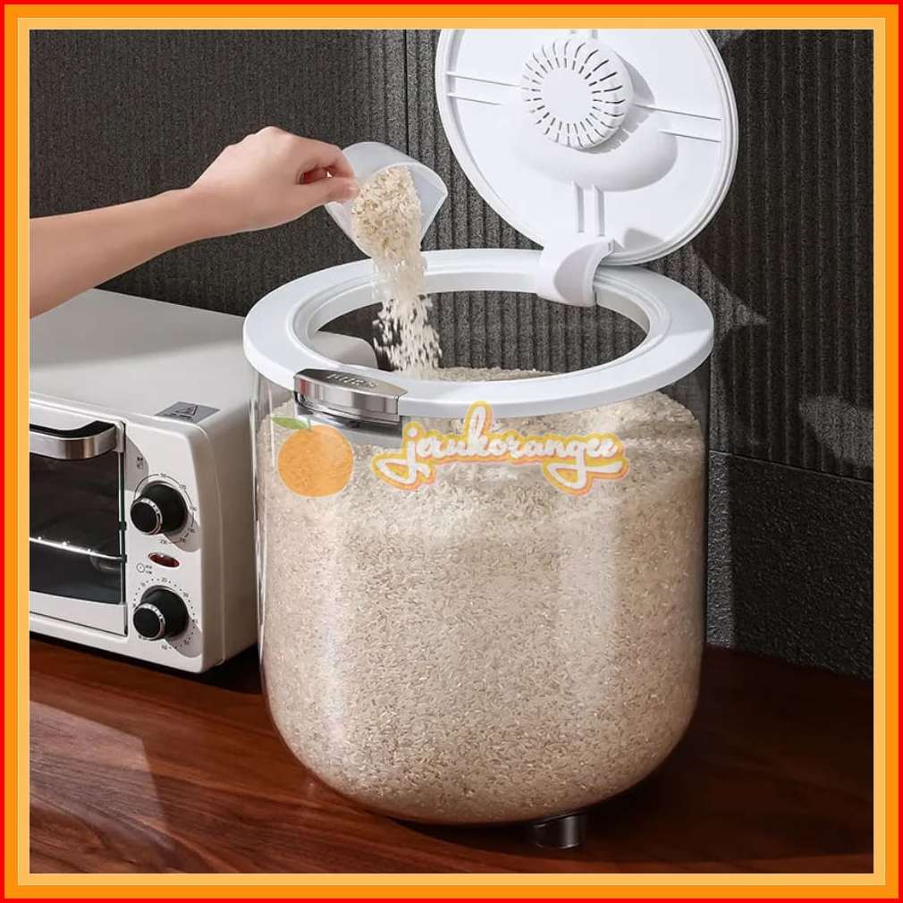 Jerukorangee Matsuri Dispenser Beras Aesthetic Kapsul Transparan 5 Kg 10 Kg 15 Kg Putih Dengan Gelas Ukur