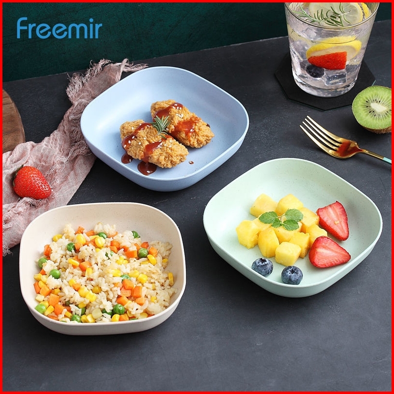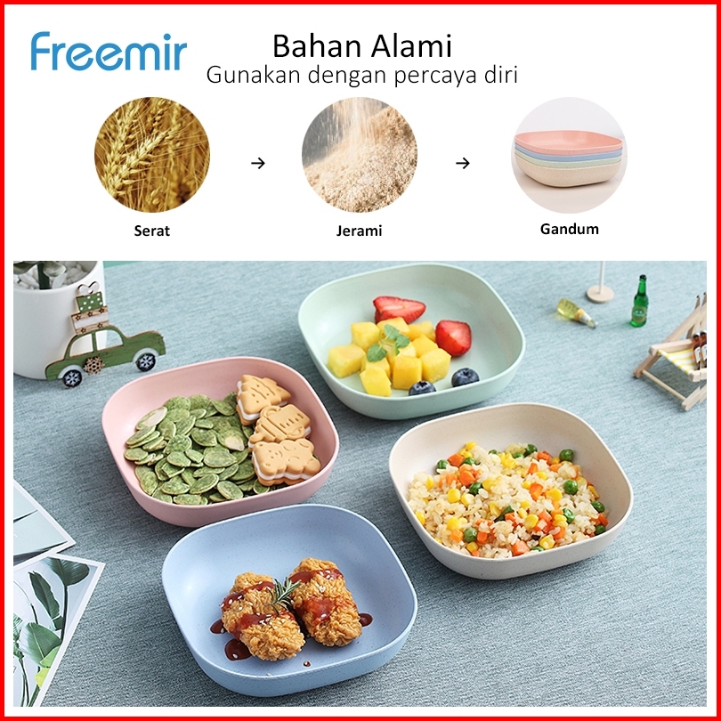 Set 1 Lusin Freemir Piring Mangkuk Gelas Wheat Straw Anti Pecah Microwave Safe