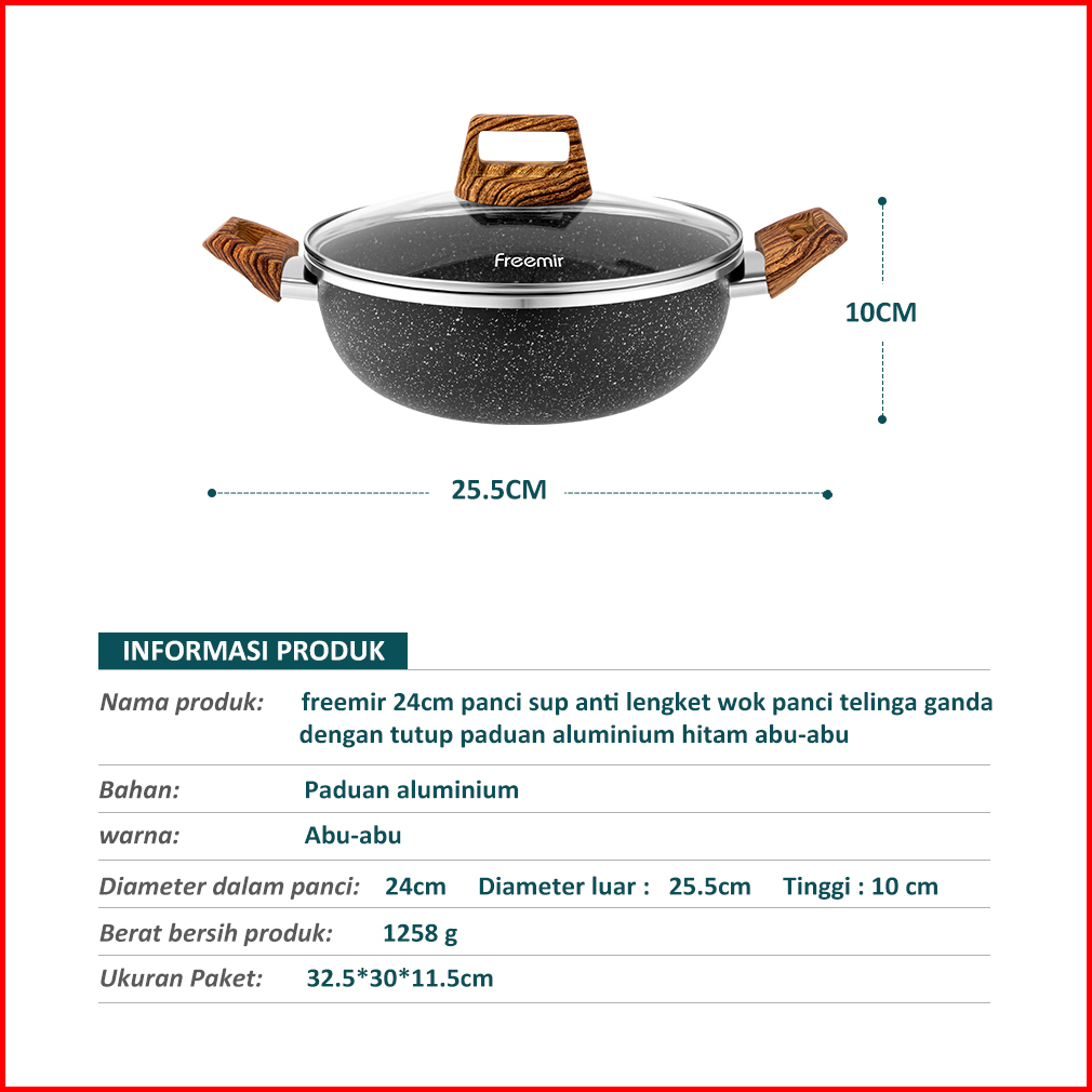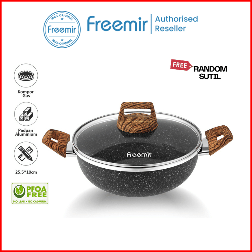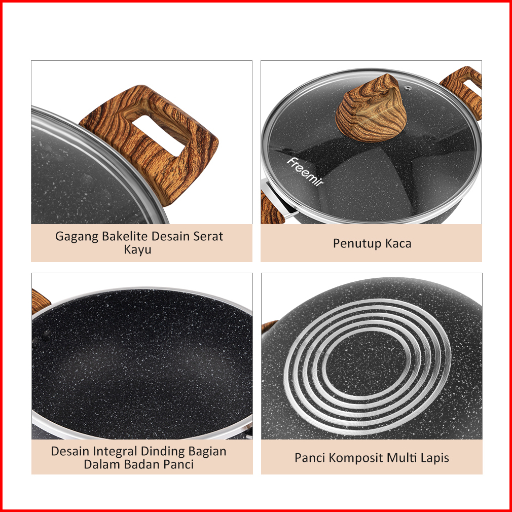 Bundle Freemir Wajan Panci 24 Cm Marble Anti Lengket Tutup Kaca Tebal