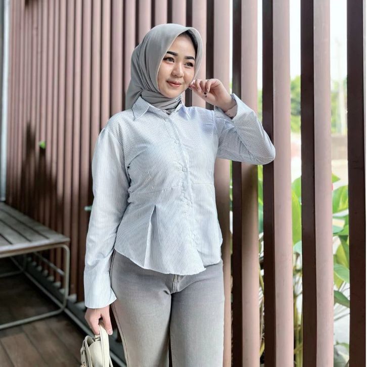 Kemeja Strip Rempel Fitted Polos Kemeja Wanita Longsleeve Atasan Luna Stripe Cewek Korea Slim Fit 2025 Terbaru
