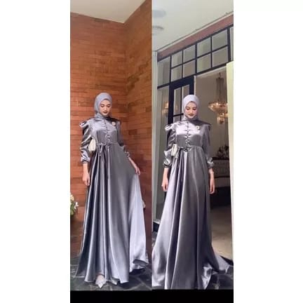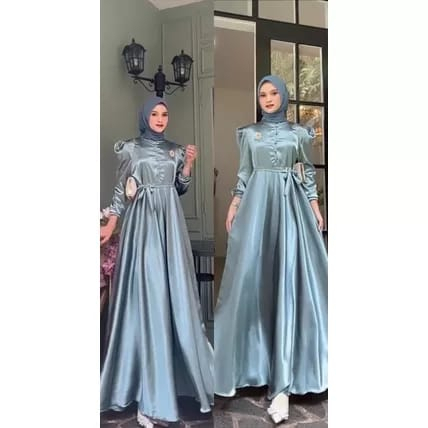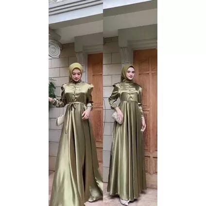 Gamis Kondangan Kekinian Aurelin Dress Satin Silk Lengan Balon Gamis Kodangan Mewah Elegant Gamis Wanita Jumbo Terbaru