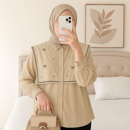 Blouse Wanita Bordir Linen Premium Fit To XL Atasan Wanita Blouse Muslim Lebaran Flash Sale