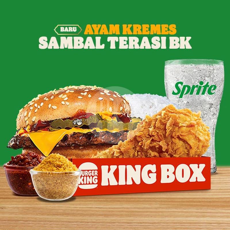 Paket 1Pcs Ayam Kremes Sambal Terasi, Paket 2Pcs Ayam Kremes Sambal Terasi, KingBox Ayam Kremes Sambal Terasi, Paket Rame-Rame : Ayam Kremes Sambal Terasi, 1 Ayam Spicy 🌶️👍🏻 + Nasi, 1 Ayam Crispy + Nasi, Fries Medium, Cheeseburger, Cheesy Fries, Blitz 2 Ayam Crispy, Chicken Burger + Fries, King Paket! 1 Ayam Crispy, King Paket! 1 Ayam Spicy 🌶️👍🏻, King Paket! BBQ Burger, 5Pc Ayam Crispy Chicken, 5Pc Ayam Crispy + 3 Rice, 2 Cheese Whopper® Jr + 2 Chicken Burger, 2 Cheeseburger + 2 Chicken Burger, Kids Meal Beef Burger + Mainan, Kids Meal Chicken Burger + Mainan, Kids Meal Paket 1pc Ayam + Mainan, Paket Crispy 1, Paket Crispy 2, 5 pcs Ayam Crispy, Paket BBQ Angus Burger Medium, King Box BBQ Angus Burger Medium, King Box Cheese Lava Angus Burger Medium, Paket Cheese Lava Angus Burger Medium, BBQ Angus Burger, Cheese Lava Angus Burger, Rice [ Nasi , Super Float [Pilihan Rasa], Medium Sprite, Regular Coke]