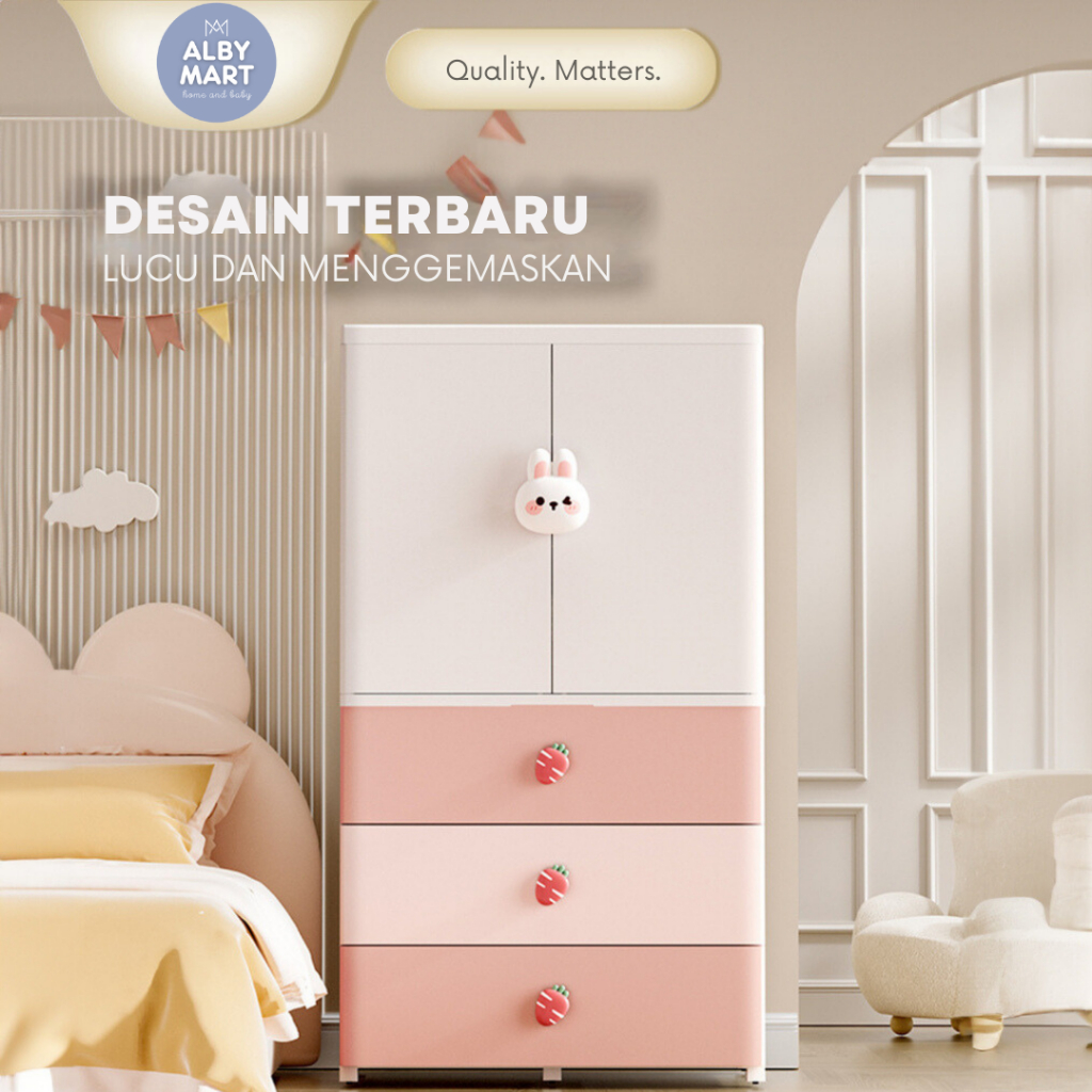 [Mall] Lemari Pakaian Anak Plastik Susun Laci Jumbo Sliding Karakter Kartun Kelinci Lucu Napolly Best Seller