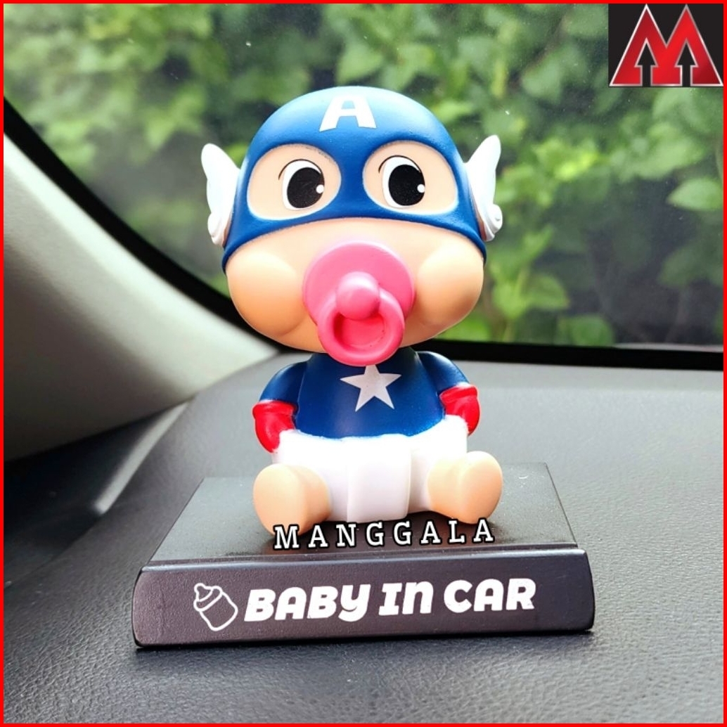 Pajangan Hiasan Figure Bobble Head Per Solar Goyang Topper Dashboard Mobil Captain America