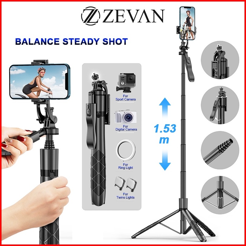 Zevan Tripod Bluetooth Selfie Stick Hand-held Stabilizer L16 153cm Multi-functional With 1 4 Adaptor Umbrella Stand Bala