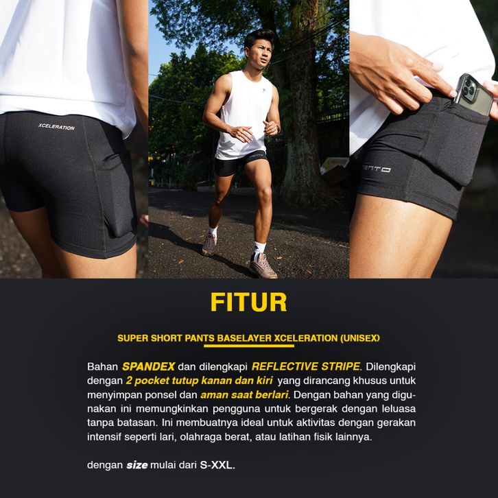 Tiento Celana Legging Pendek Olahraga Lari Short Pants Leging Running Xceleration - Celana Olahraga Running Pria Panjang