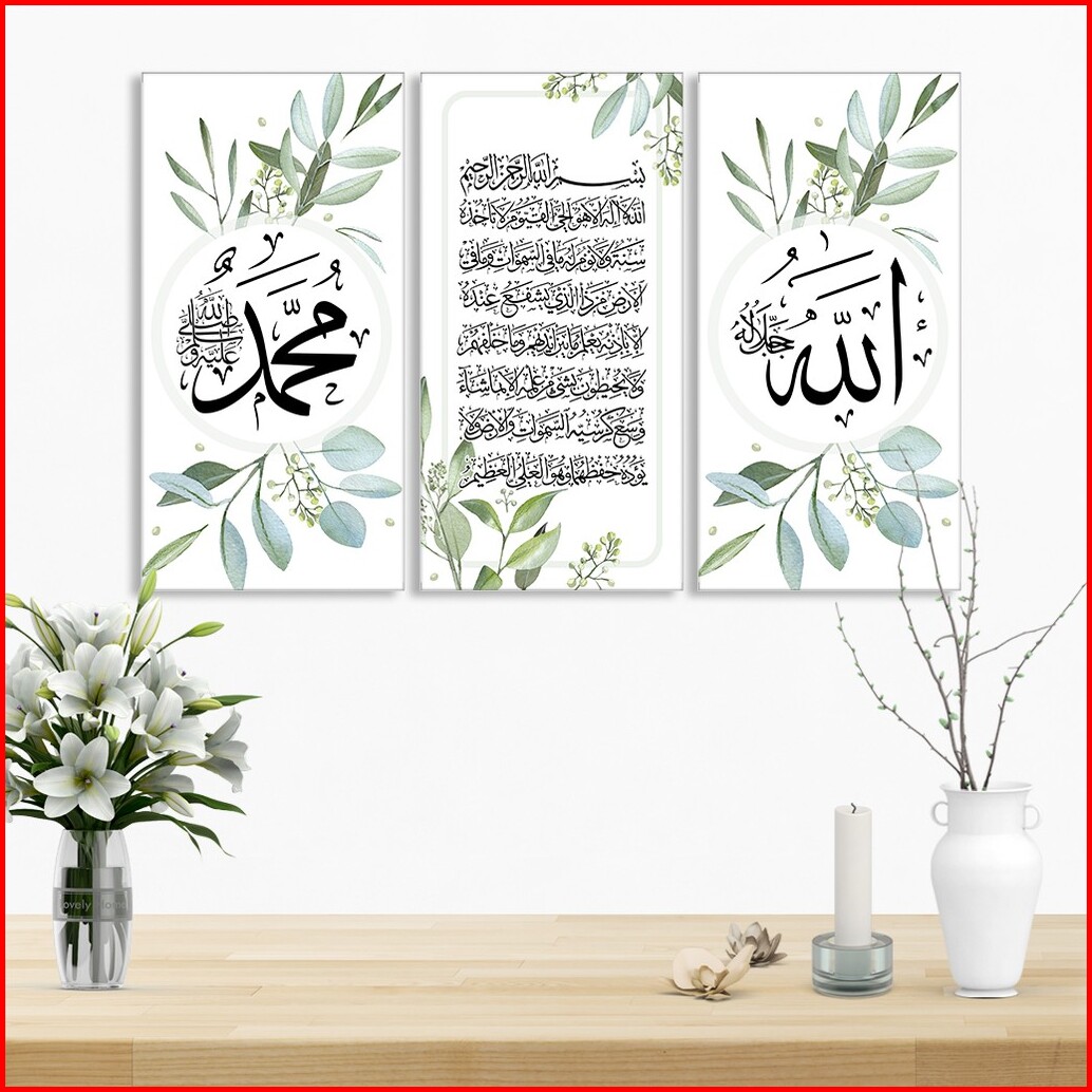 Hiasan Dinding Kaligrafi Shabby Chic Satu Set Allah Muhammad Ayat Kursi - Ama11