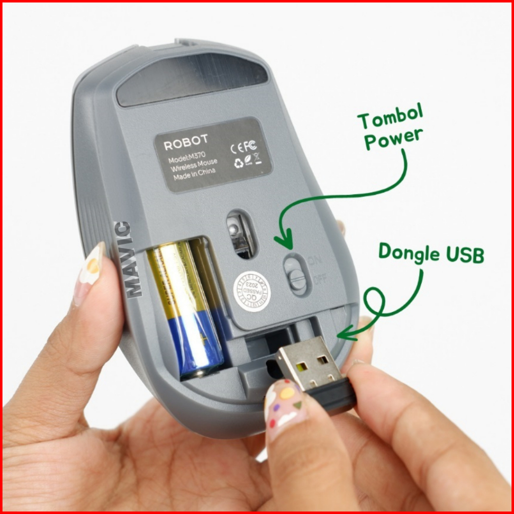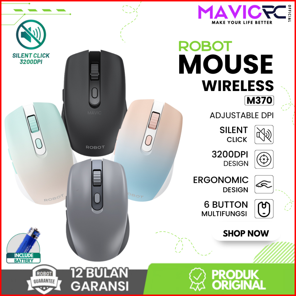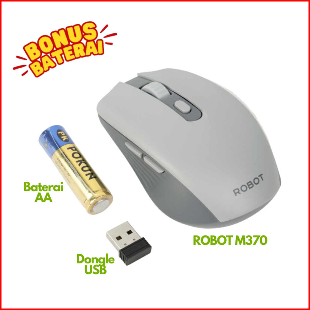 Robot M370 Mouse Wireless 2.4ghz Silent Optical 3200dpi Dengan Receiver Usb Untuk Pc Laptop Original - Garansi Resmi 1 T