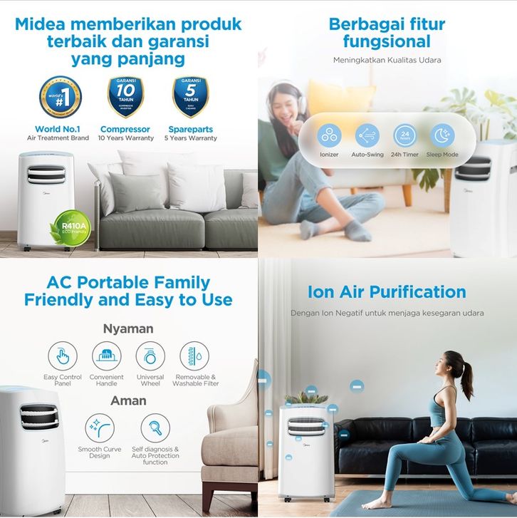 Midea AC Portable 1.5 PK MPF2-12CRN1 Self-Diagnosis And Auto Protection Pendingin Ruangan Portable Penyejuk Ruangan