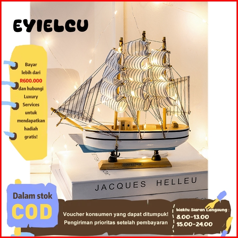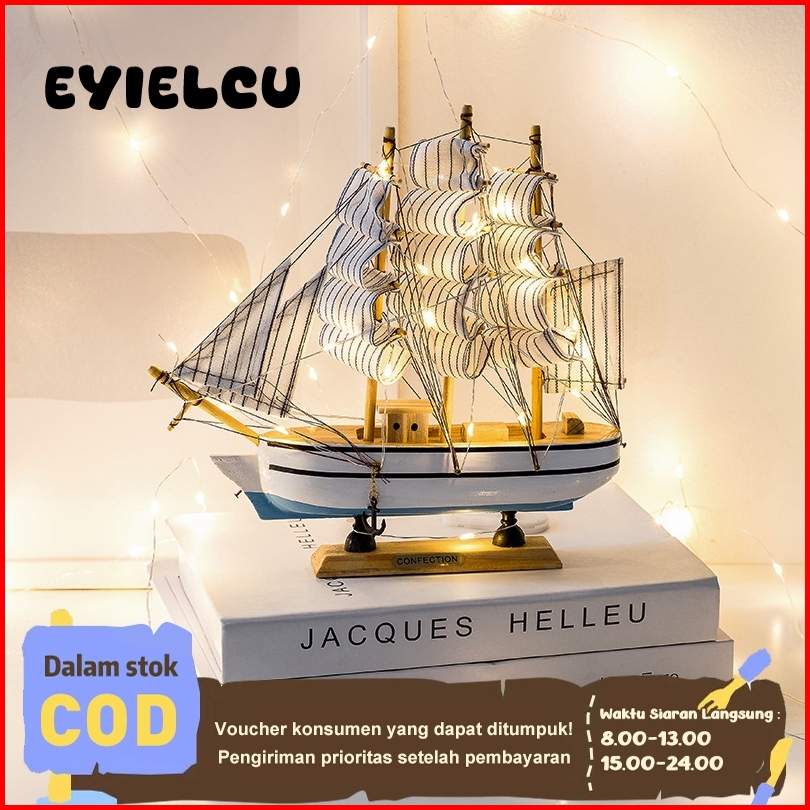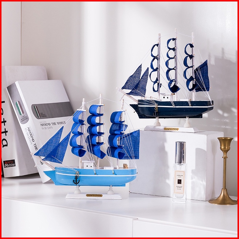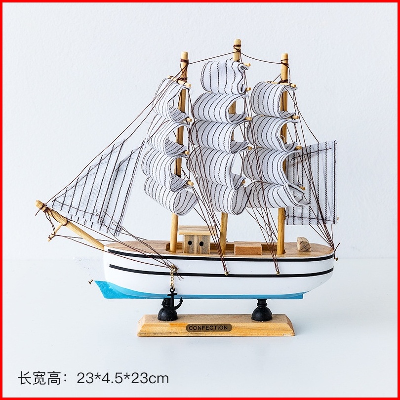 Eyrejaminan Kualitas 23cm Model Perahu Layar Kayu Kerajinan Ruang Tamu Kantor Kerajinan Mediterania Angin Mediterania Or