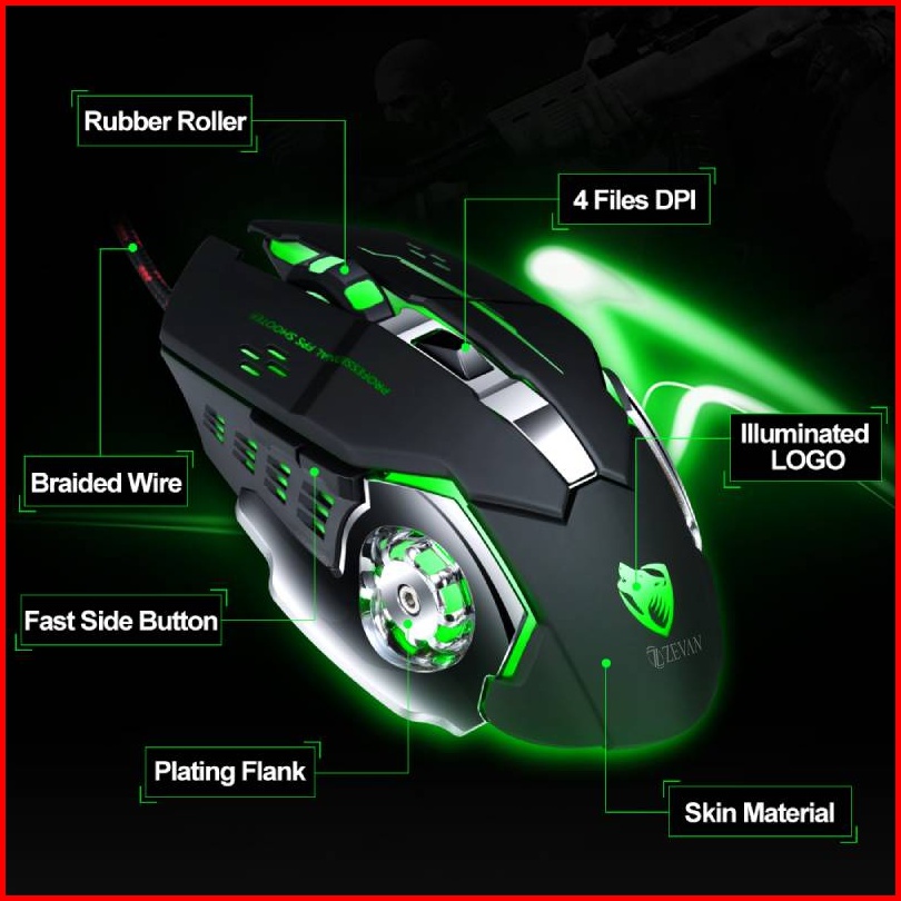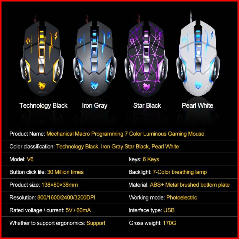Zevan Mouse Gaming Wired Rgb 7-color T-wolf Led V6 Mouse Kabel Game
