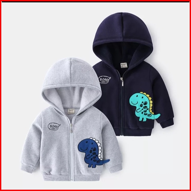 Sweater Hoodie Anak Anak Casual Dino Sweater Hoodie Bertudung Anak Karakter Dino