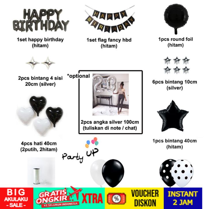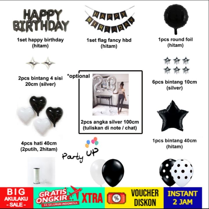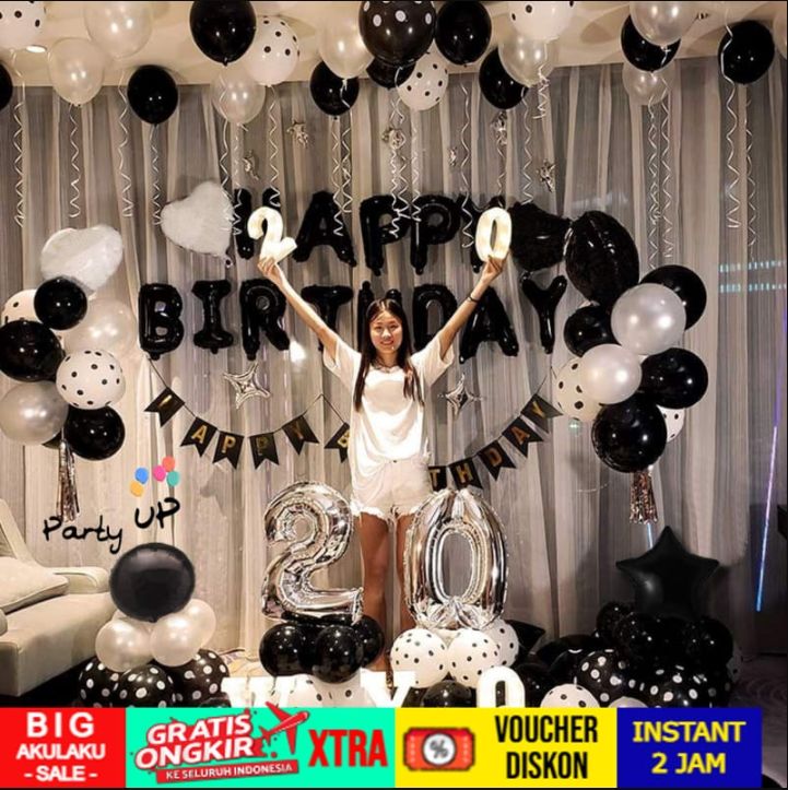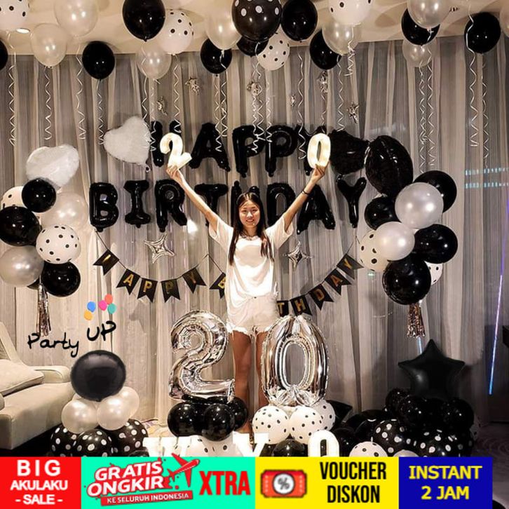 [Paket] Happy Birthday Polkadot Hitam Putih