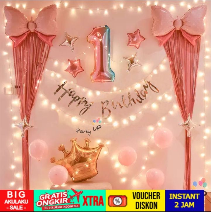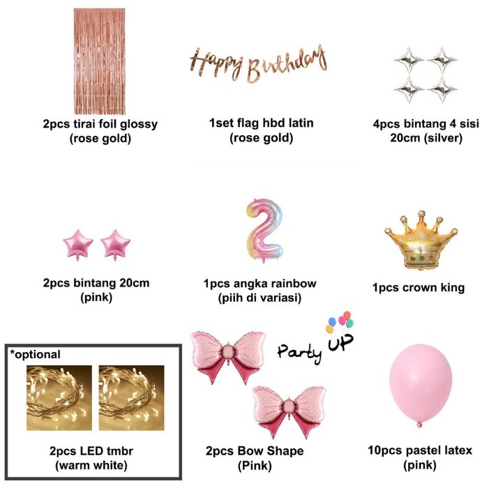 [Paket Kids] Pink Tie Birthday Rainbow Party Decoration