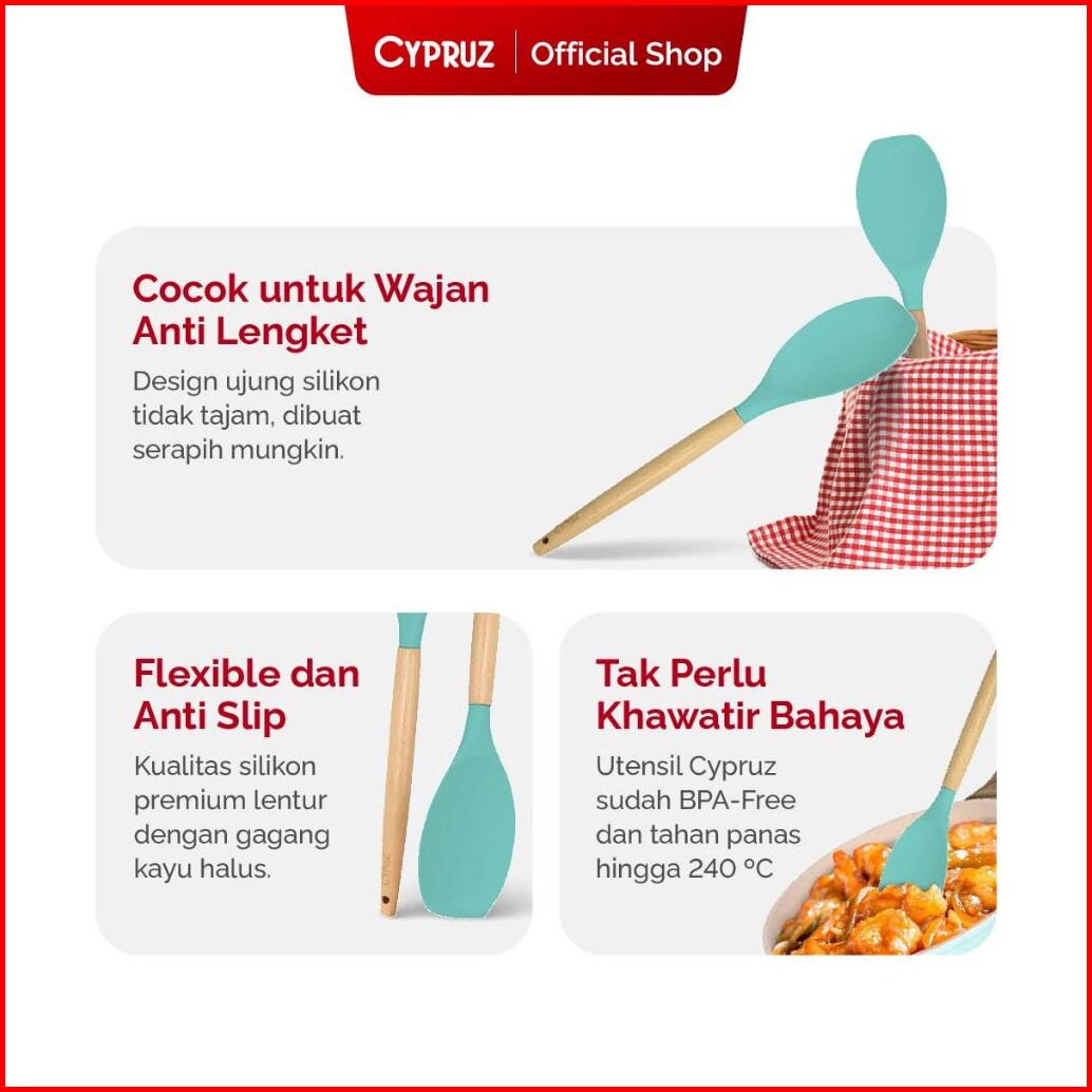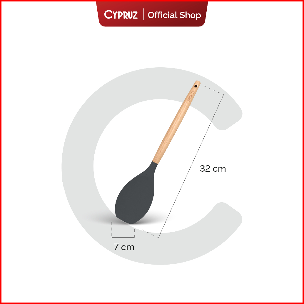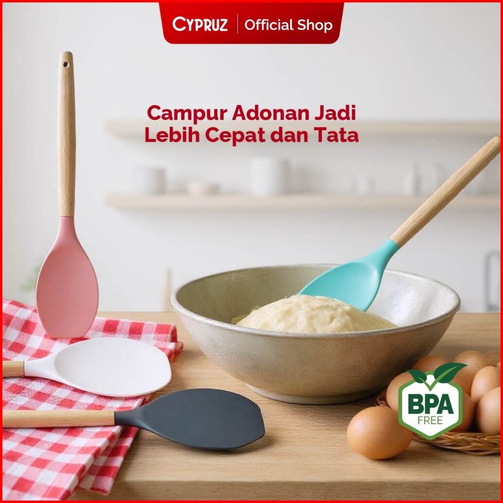 Cypruz Utensil Gagang Kayu Kepala Silicone Sendok Serving Rata