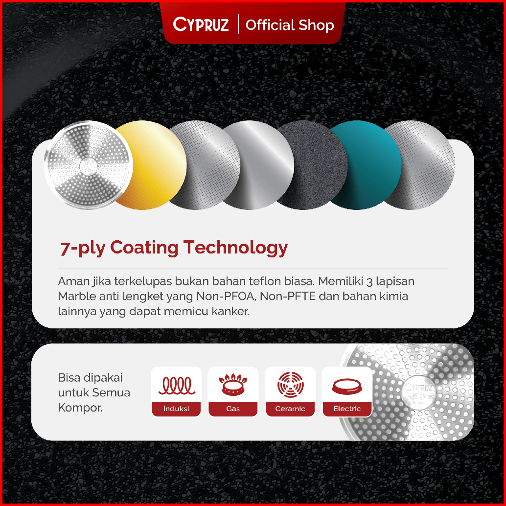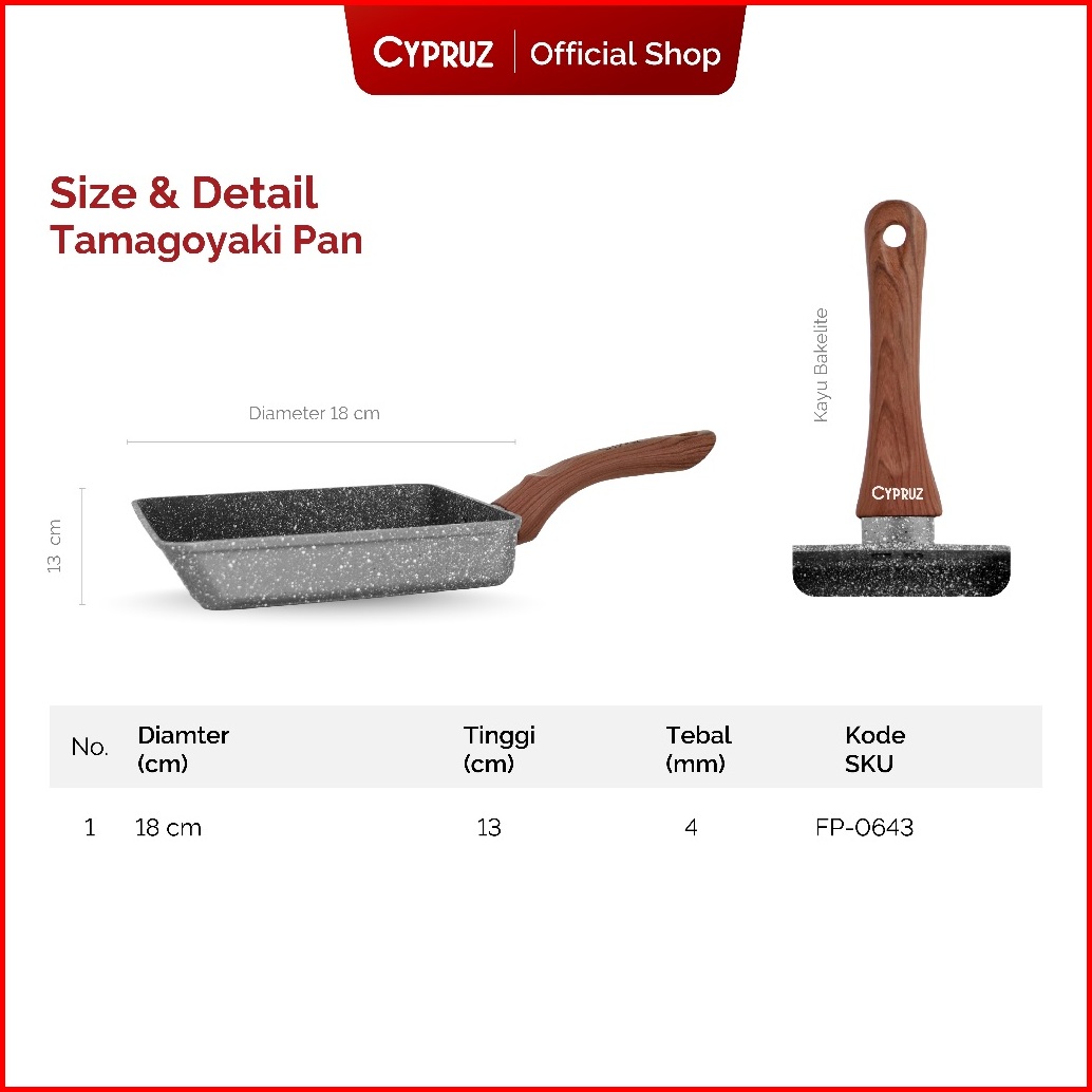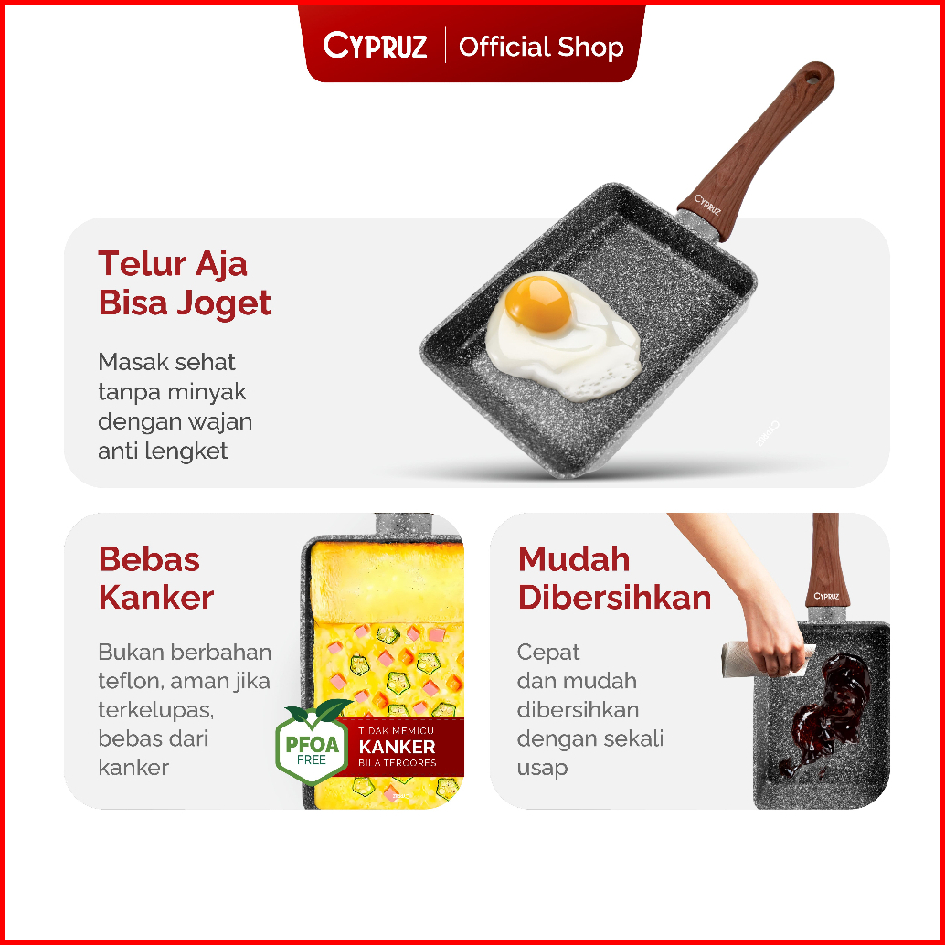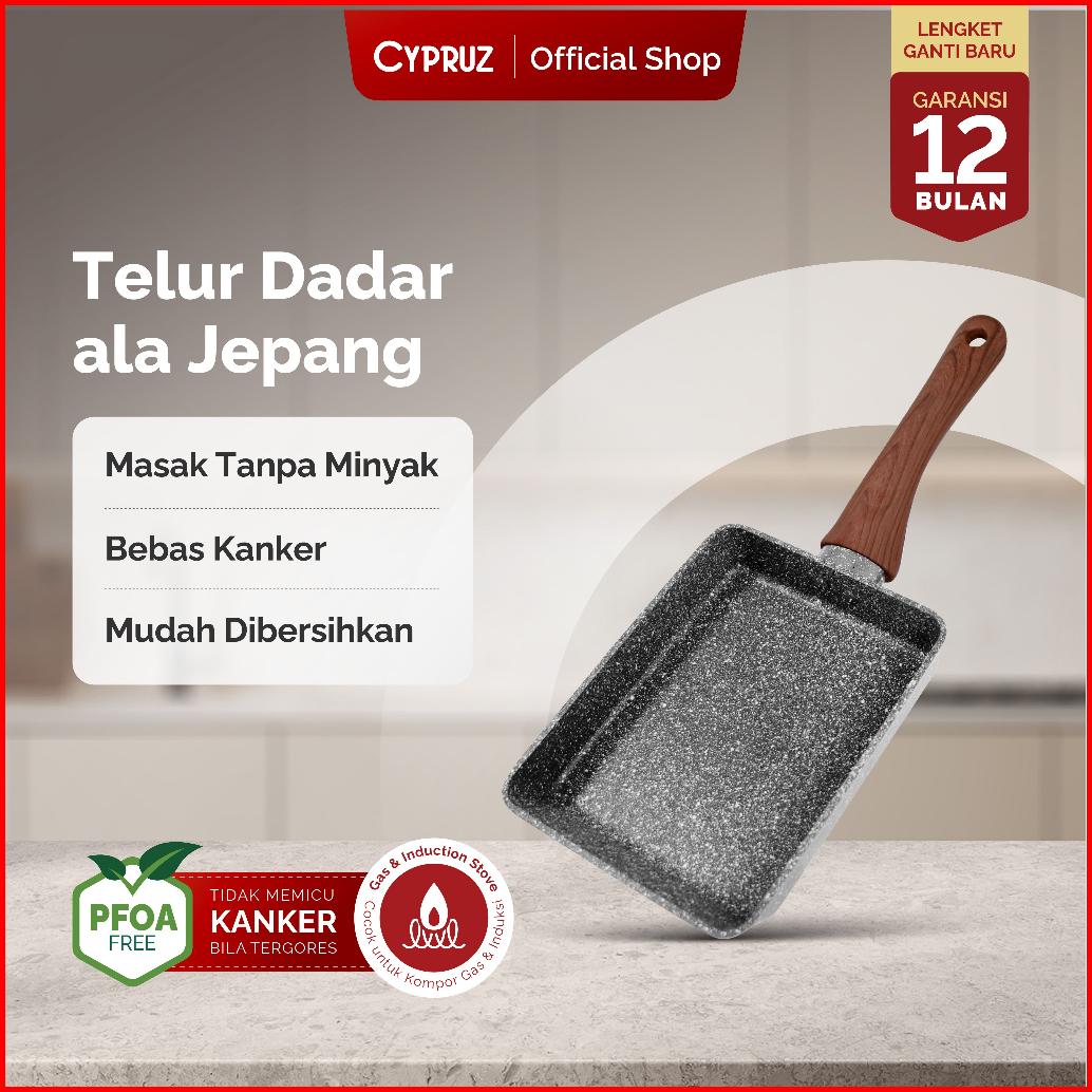 Cypruz Tamagoyaki Panci Wajan Penggorengan Telur Anti Lengket Grey Marble Series