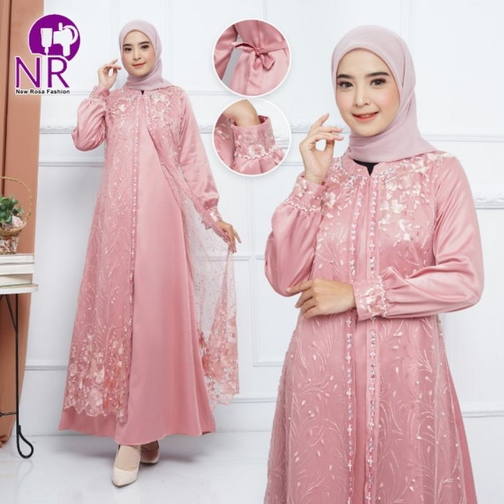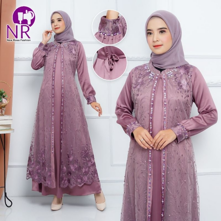 Gamis Wanita Terbaru Febyan Dress Series With Beads Gamis Brukat Tule Rompi Gamis Lebaran 2026 Gamis Pesta Bridesmaid