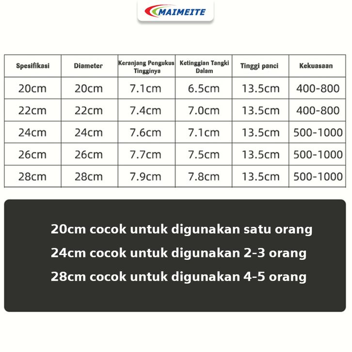 MAIMEITE Panci Listrik Multifungsi 4 Liter Panci Elektrik Electric Cooker Non Stick Panci Elektrik 20/24/28cm Cooking Po
