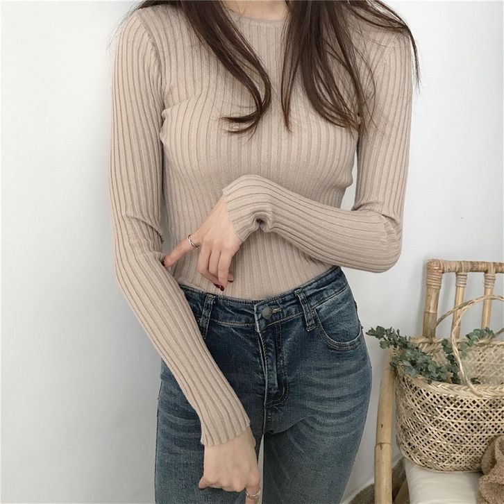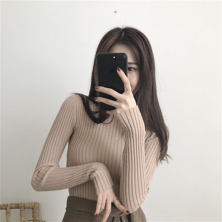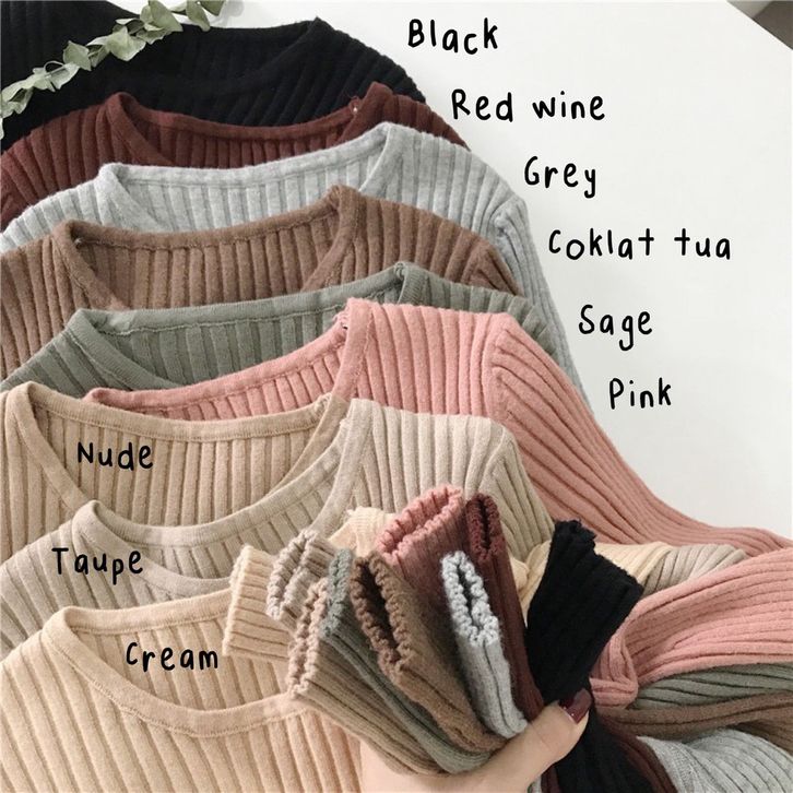 Baju Inner Rajut Cewek Lengan Panjang Pakaian Dalaman Blouse Polos Fashion Ootd Stylish Wanita Perempuan