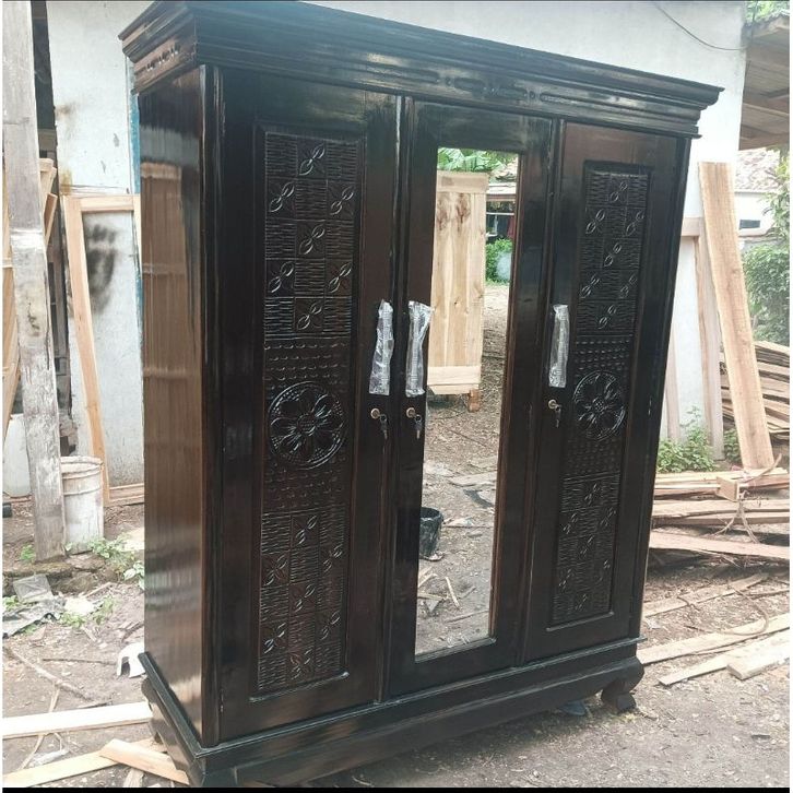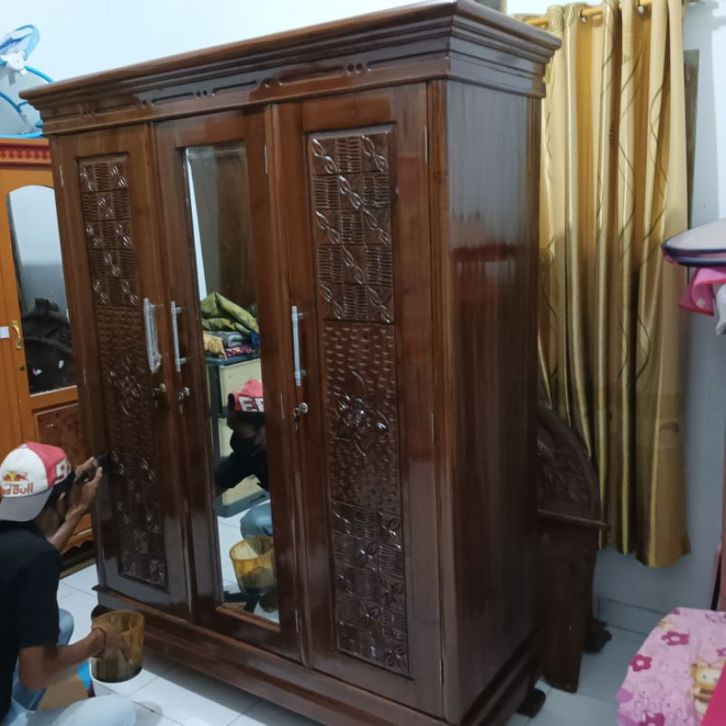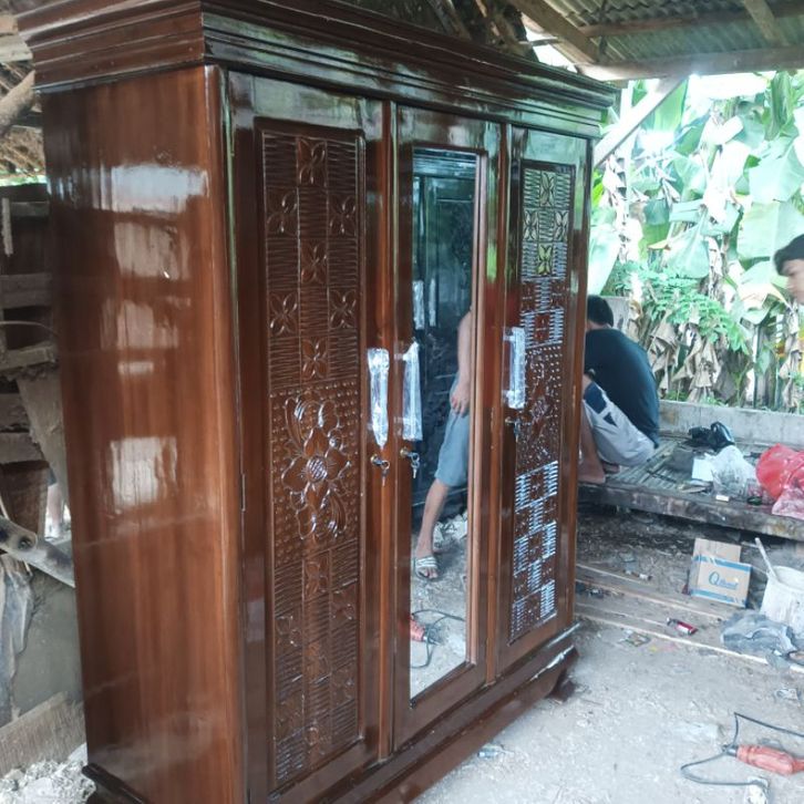LEMARI PAKAIAN 3 PINTU HIJAB DENGAN 2 RAK DAN 1 GANTUNG GAMIS + GANTUNG HIJAB DENGAN UKURAN JUMBO