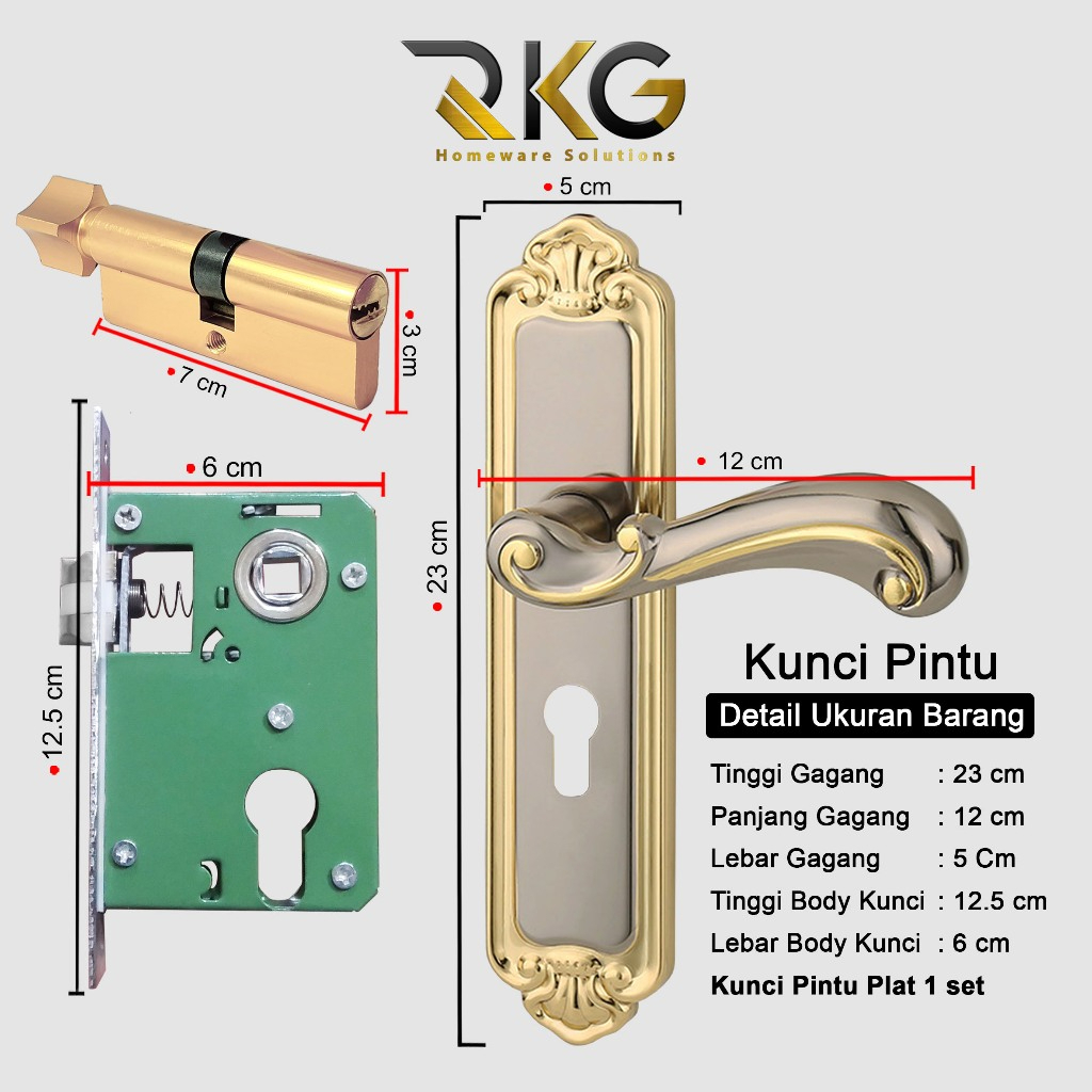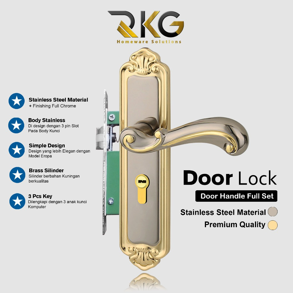 GAGANG PINTU GAYA EROPA TITANIUM FULL SET / KUNCI PINTU PREMIUM