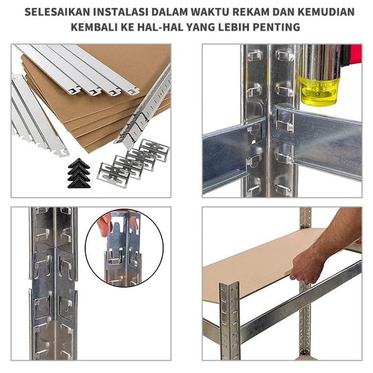 RAK SUSUN RAK BESI RAK BESI SIKU LUBANG RAK SUSUN SERBAGUNA RAK GUDANG RAK BARANG 3/4/5/6 TINGKAT 120*30*200