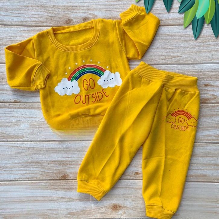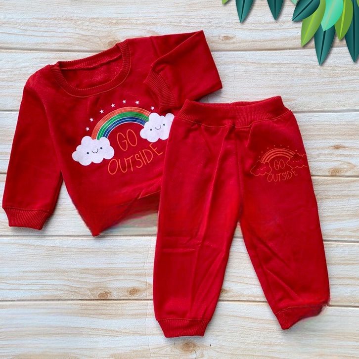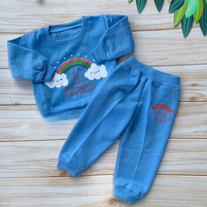 Setelan Sweater Bayi Setelan Joger Bayi Bahan Pleece Motif Pelangi Usia 3-12 Bulan