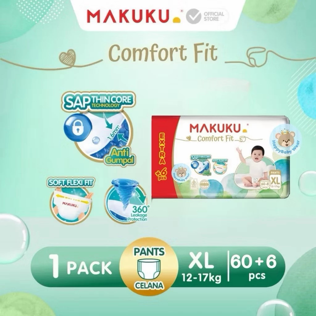 1 Ball MAKUKU SAP Diapers Comfort Fit Pants JUMBO M L XL XXL Popok Bayi Tipis Extra Dry Cepat Kering Type Celana