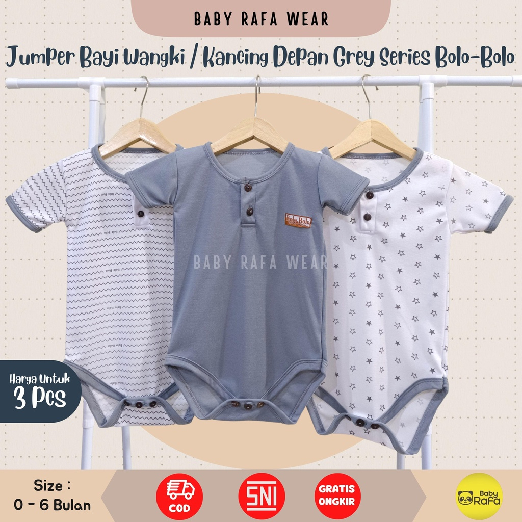 Serian Abu - 3 pcs Jumper Bayi GREY SERIES 0 sd 6 Bulan merk SNI Bolo - Bolo / Baju Bayi JUMPER Serian Abu