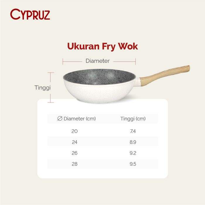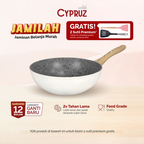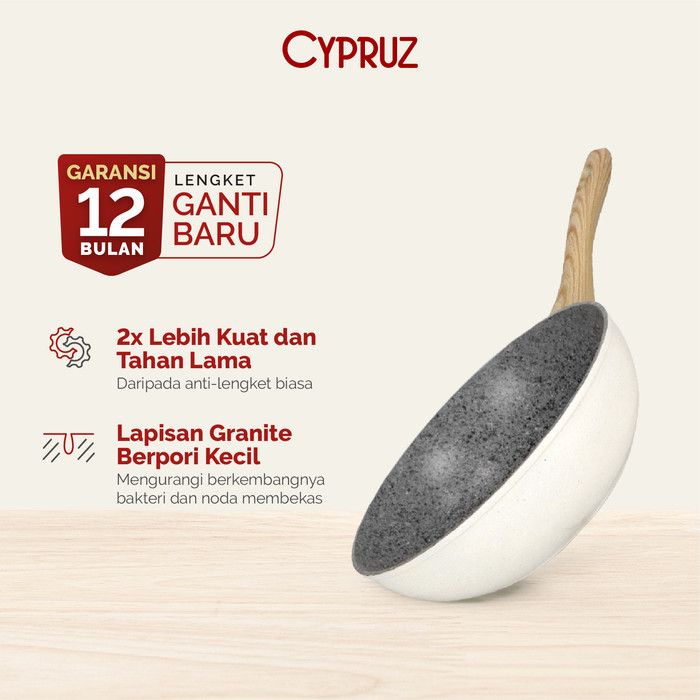 Wajan Tebal Anti Lengket Cypruz White Granite Fry Wok