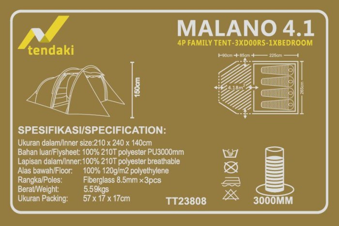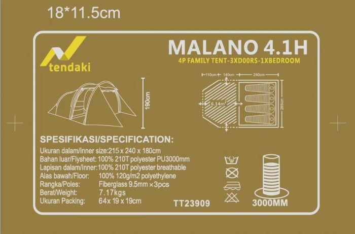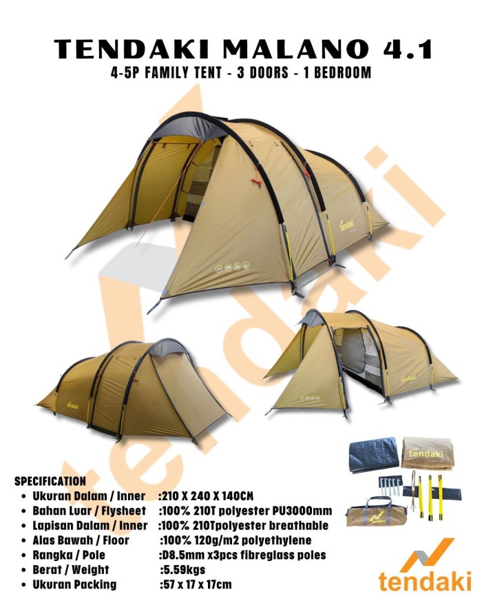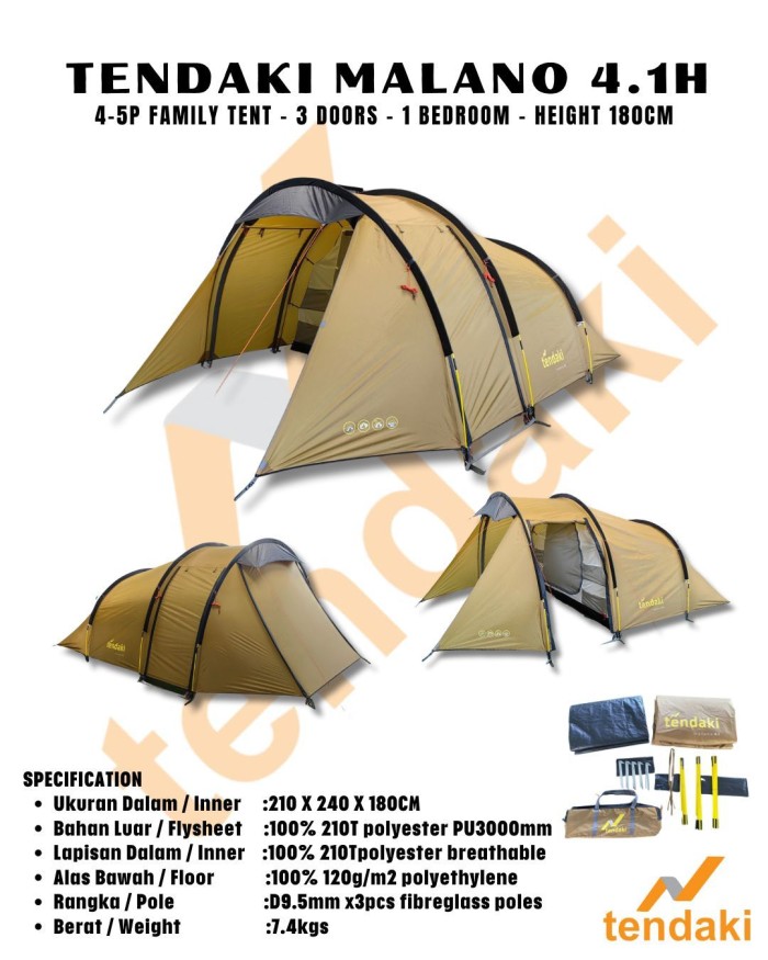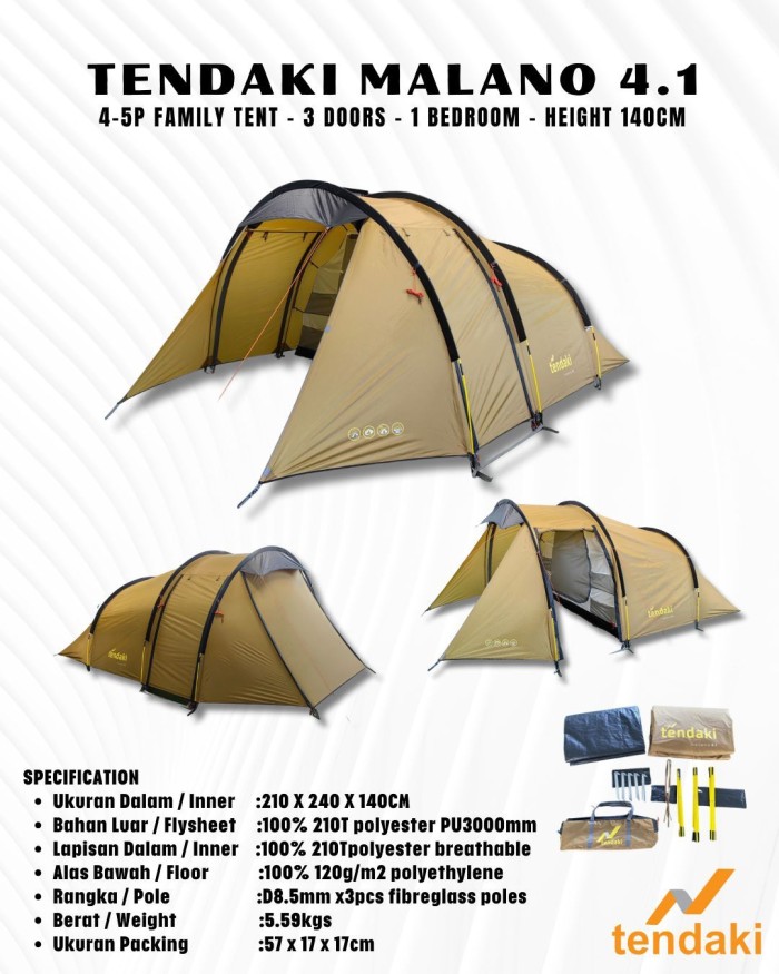 TENDAKI MALANO 4.1 - MALANO 4.1H TENDA CAMPING FAMILY KAPASITAS 4-5 - MALANO4.1