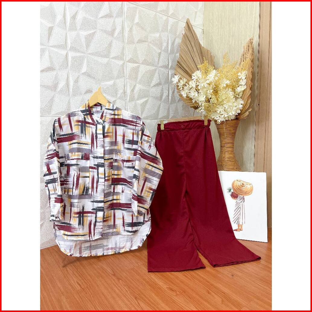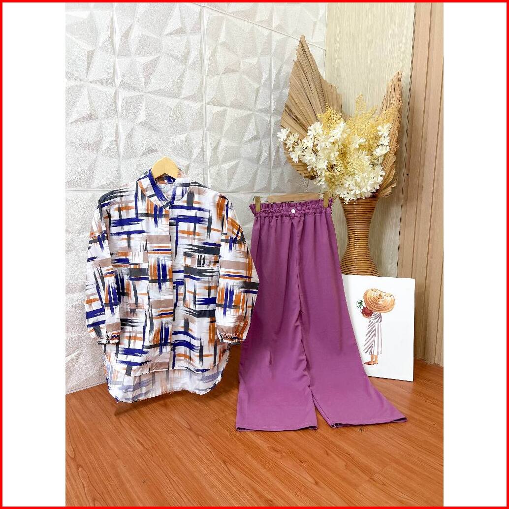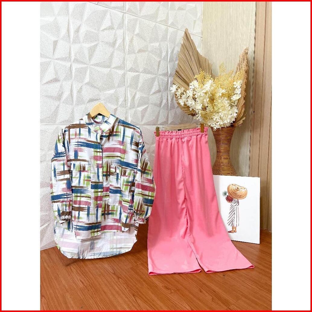One Set Audrey Celana Dobby Pants Setelan Wanita Kekinian Atasan